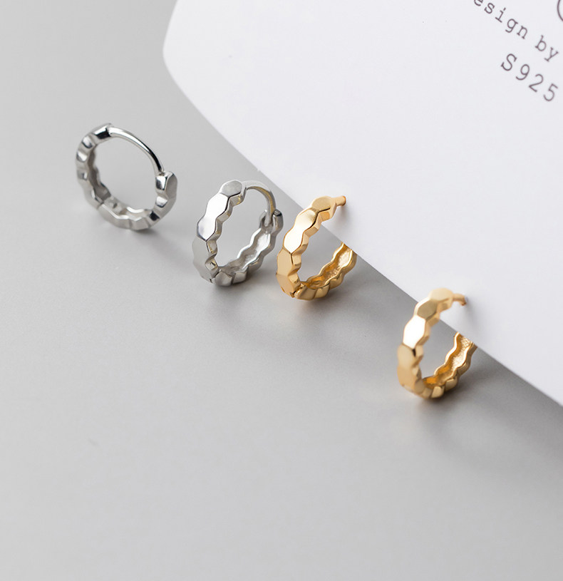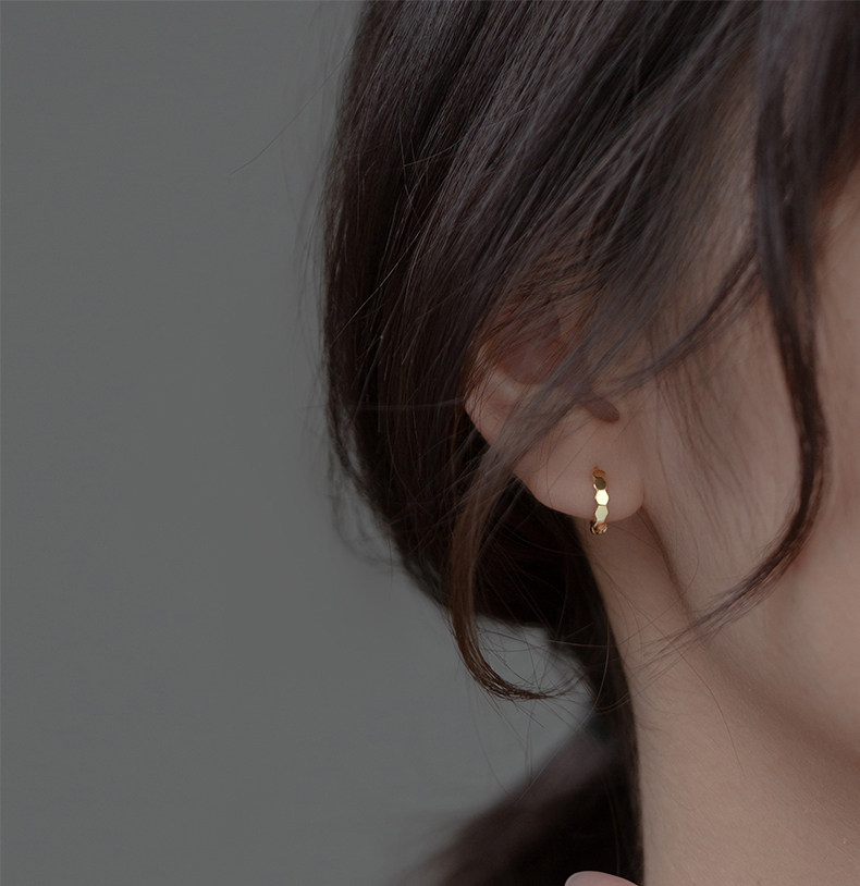 Eloch s925 plata simple polygonal plano plano plano de corte perfiles de orejas de estilo de viaje coreano orejas M00627