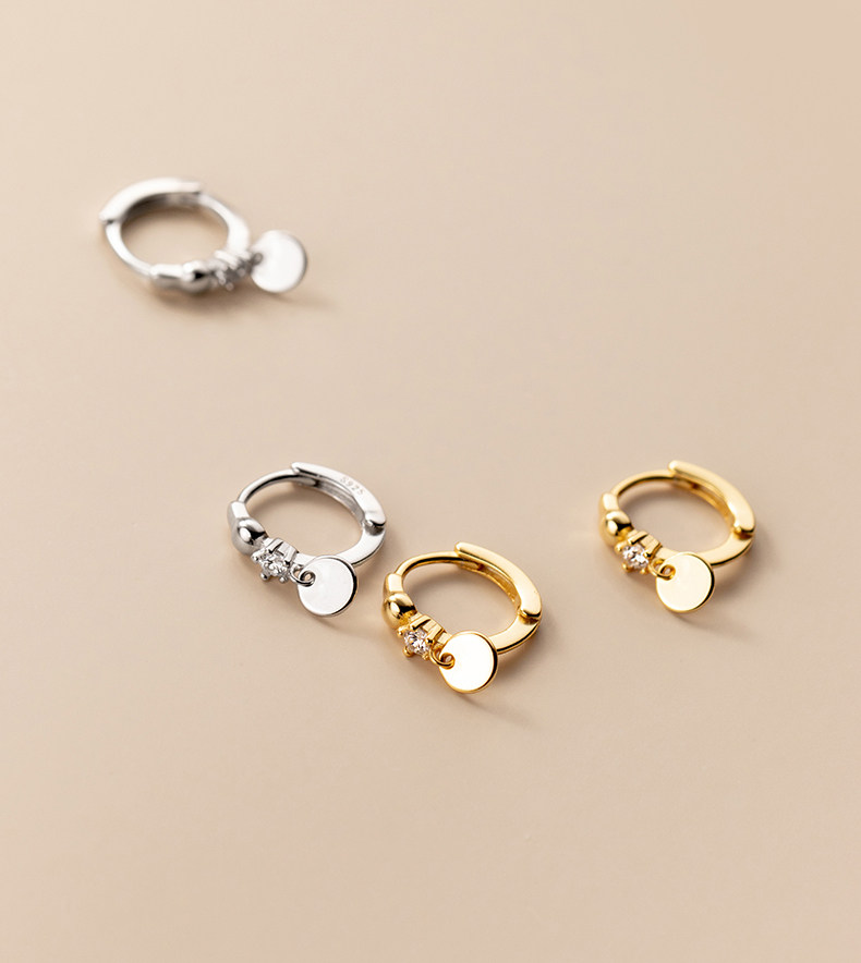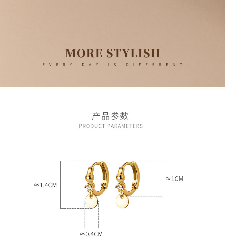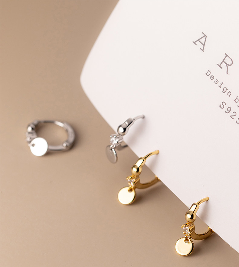 Eloch s925 temperamento plateado dama diamantes simples orejas de disco para mujeres simple viento de verano joyas de orejas geométricas G9457
