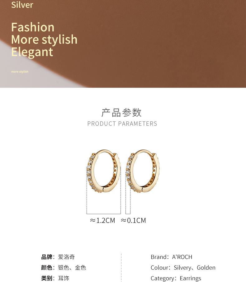 Eloch s925 plata coreana temperamento simple perforación de orejas perforación de orejas para mujeres pequeñas orejas redondas frescas y compactas M00730