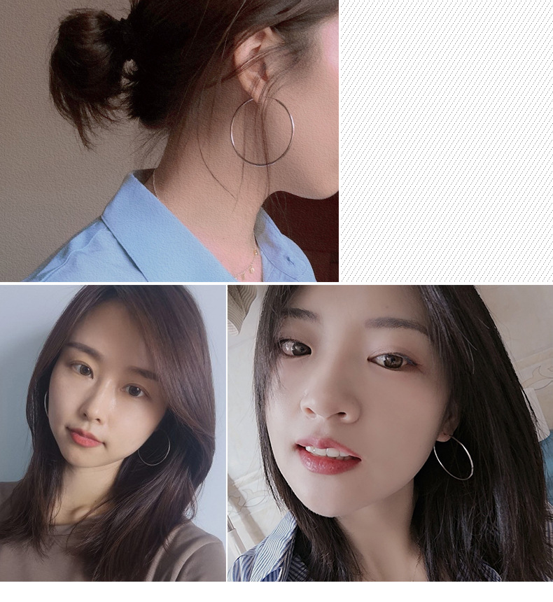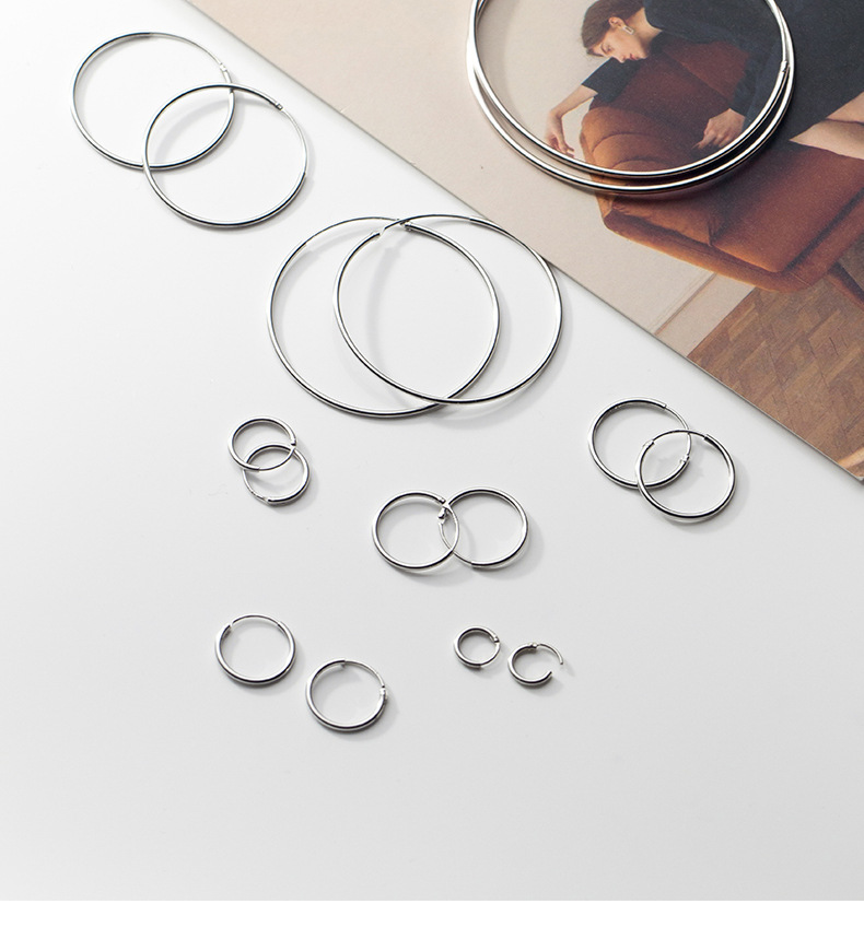 S925 plata esterlina 1.2mm1.5mm diámetro de alambre grandes aretes temperamento versátil mini anillo pendientes de orejas G0083