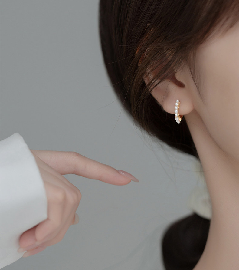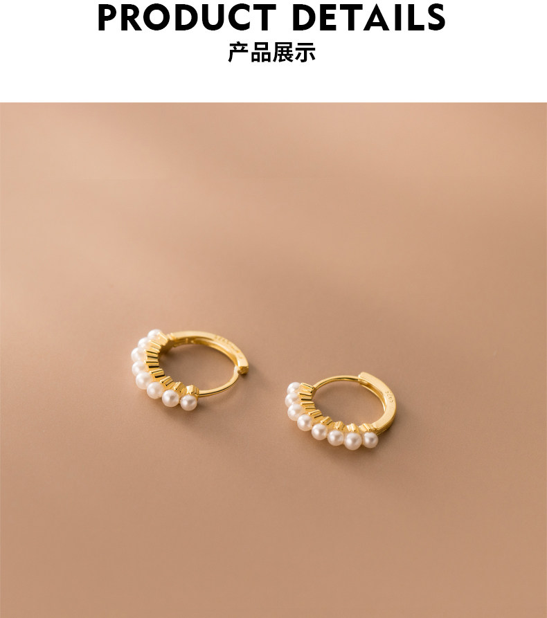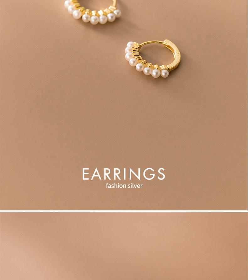Eloch s925 plata coreana sencillo corto sintético de perlas pendientes de otoño aretes redondos M00897