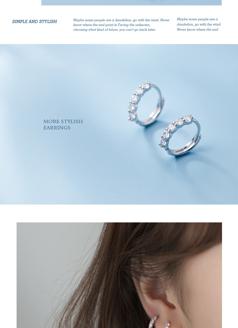 Eloch s925 plata coreana temperamento de diamantes flash pendientes cortos de diamantes femeninos de fila de diamantes simples estudiantes de orejas redondas E9779