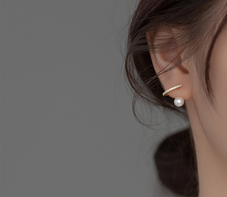 Eloch s925 plata simple perforación círculo de perla temperamento sin agujeros de orejas pequeñas orejas frescas clips de hueso de orejas mujeres M02460