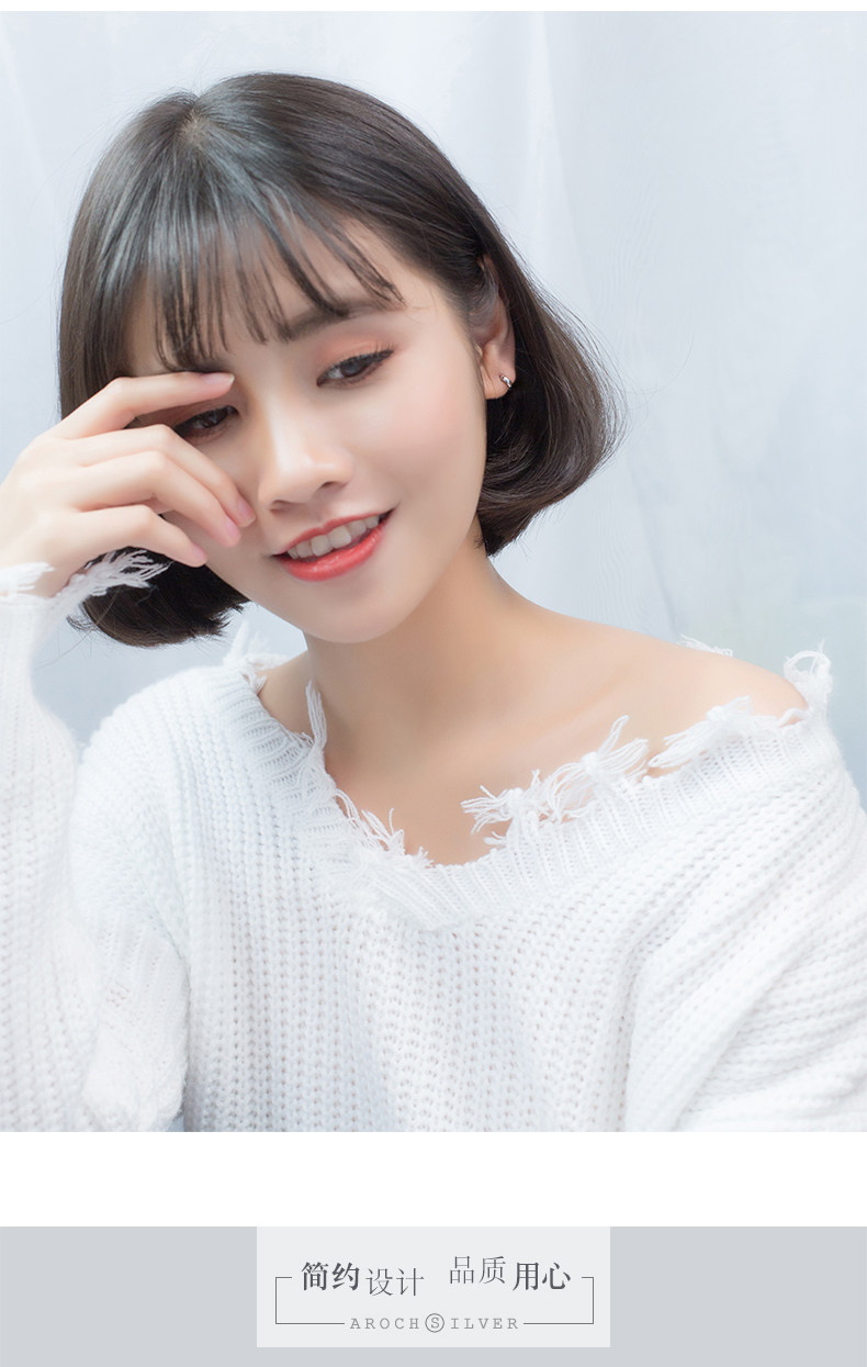 S925 botón de orejas de plata para mujeres estilo japonés y coreano simple brillante círculo corto de orejas temperamento botón de orejas clavo de orejas E1013