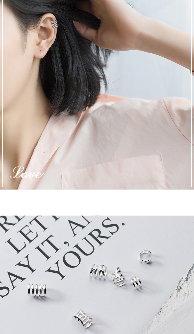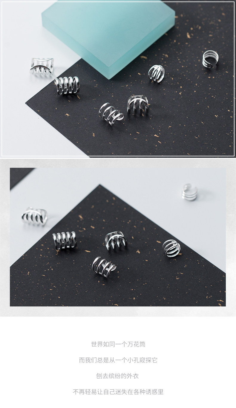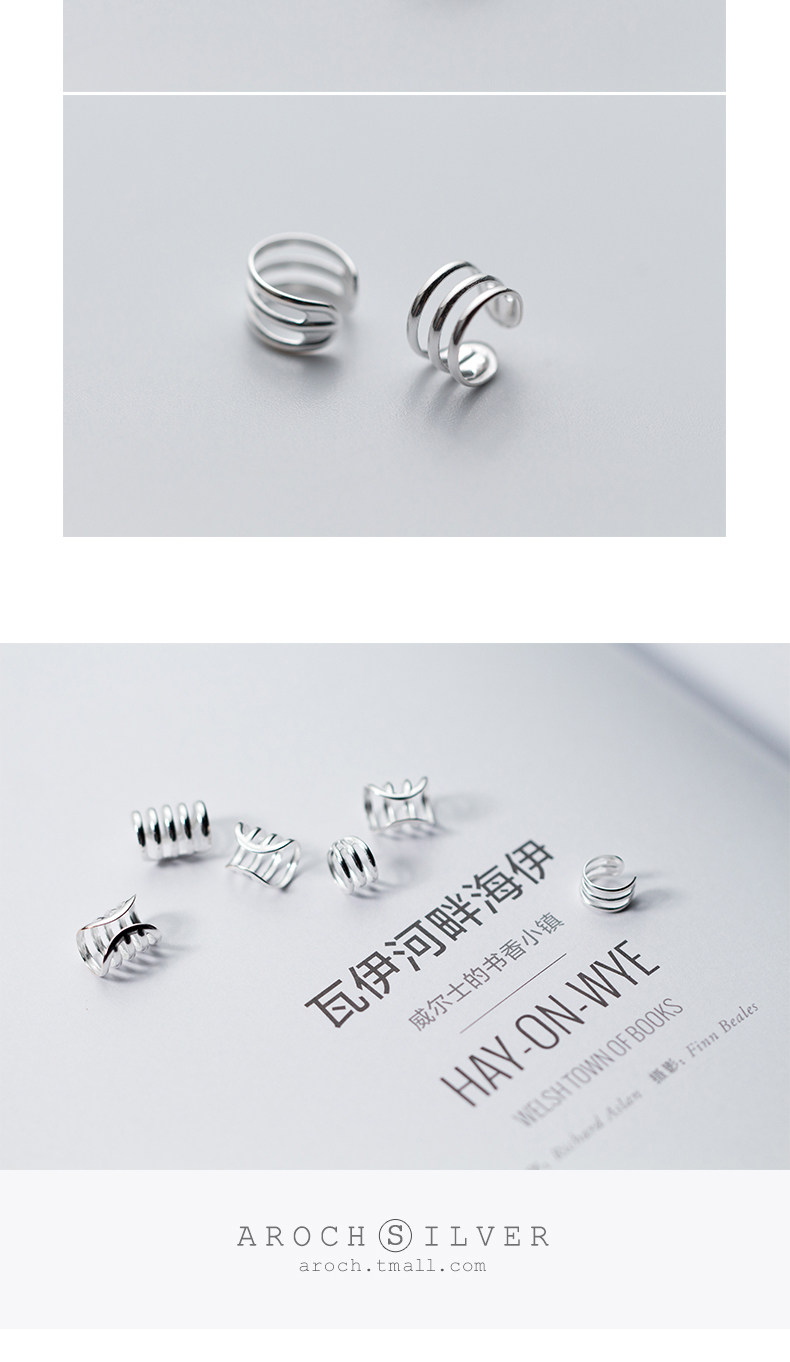 S925 plata hombre y mujer personalidad simple hueco tres o cuatro o cinco círculos sin agujeros de orejas multicapa de múltiples anillos auriculares E7273