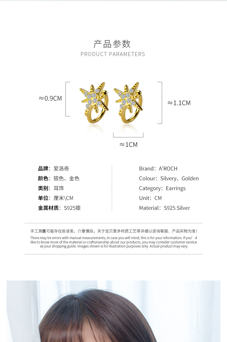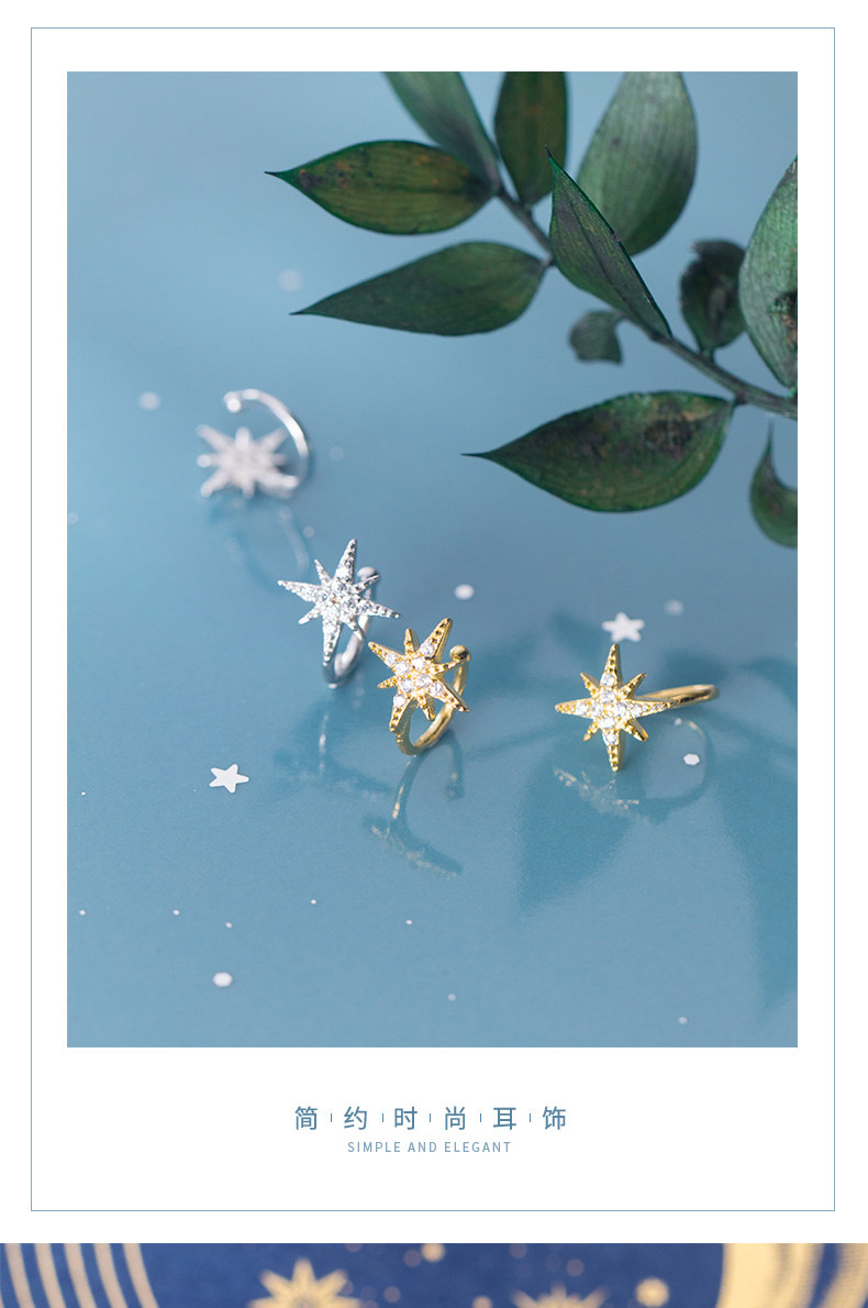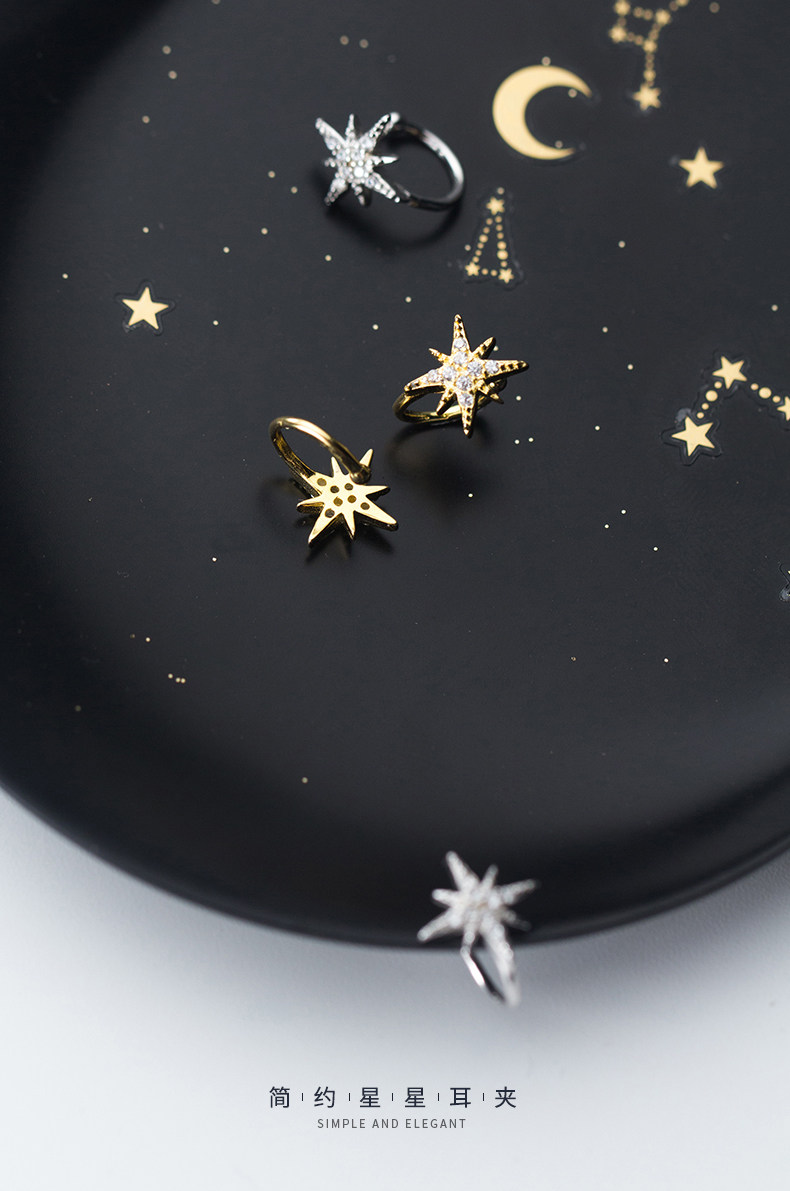 S925 estrella de plata clips de orejas para mujeres coreanas pequeños diamantes frescos brillo dulce sin agujeros de orejas temperamento G9106