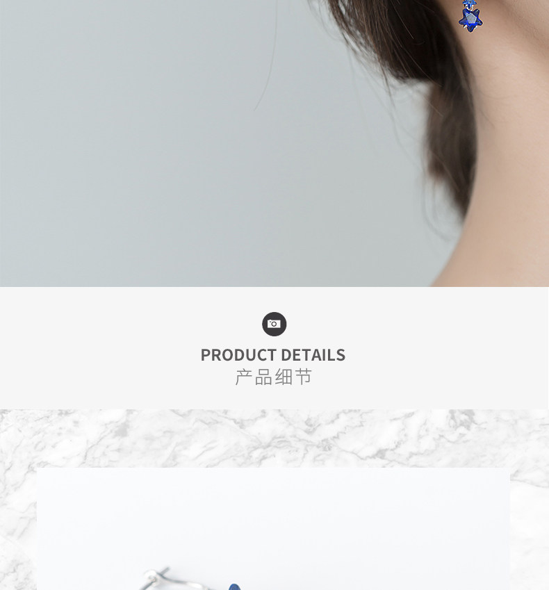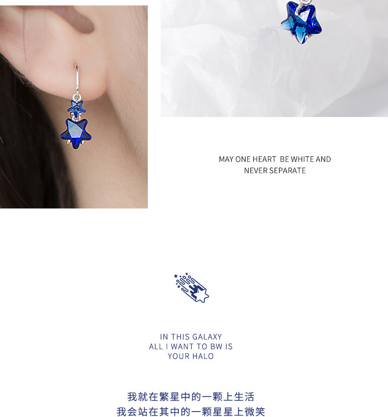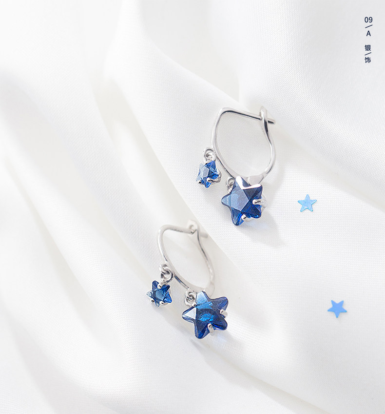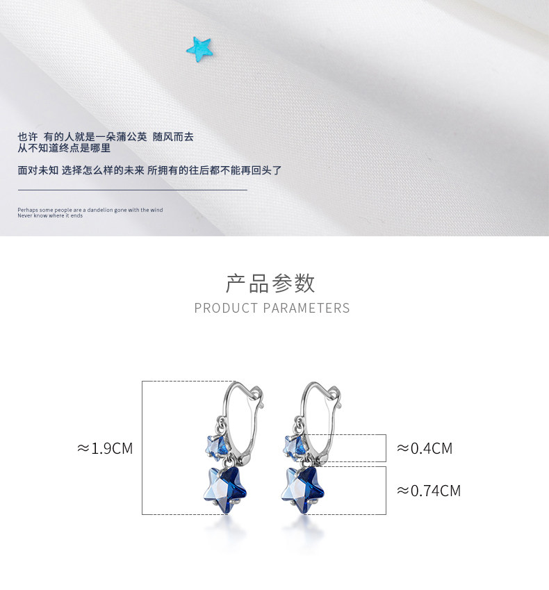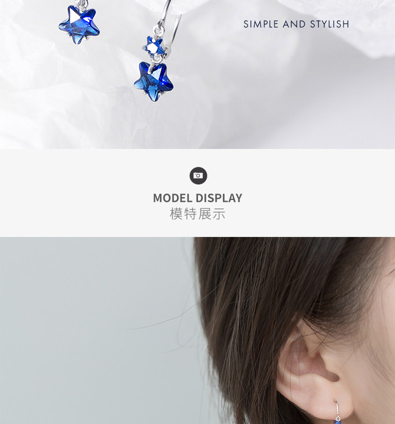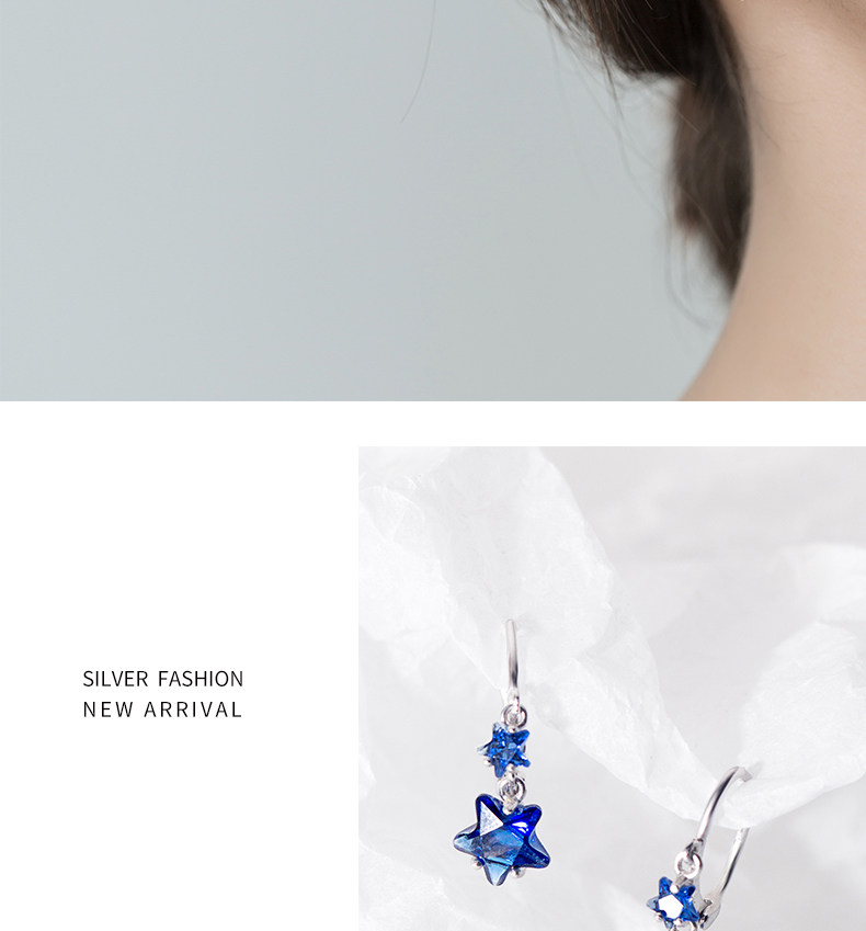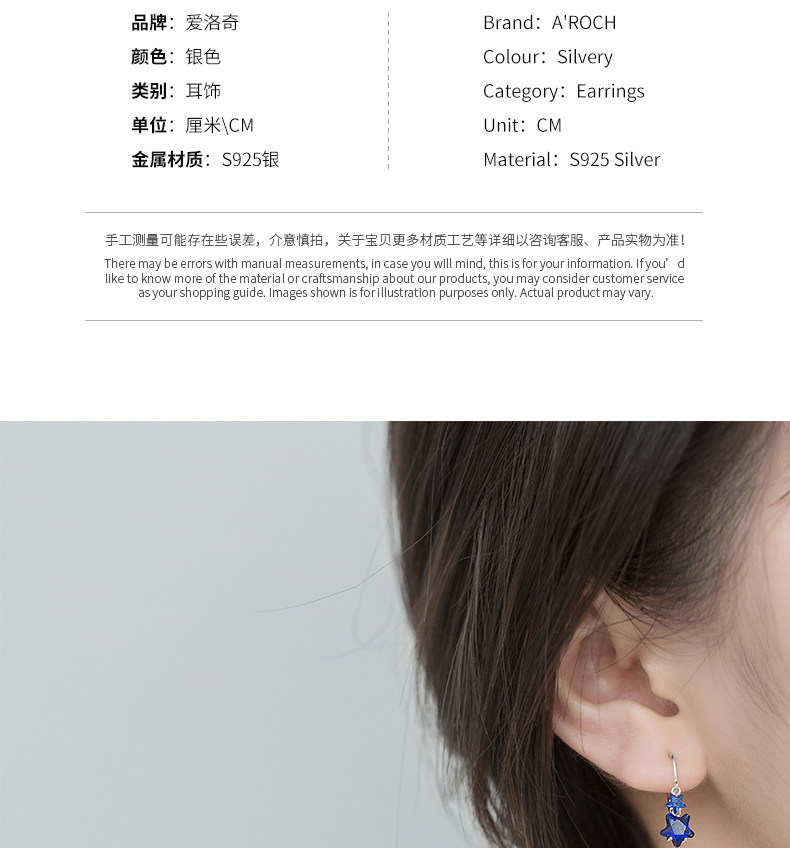 Pendientes de estrellas Arochi Elegante Pendientes de estrella de cinco puntas azul oscuro Moda s925 Pendientes cortos de plata Mujer G6262