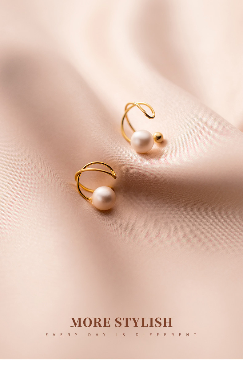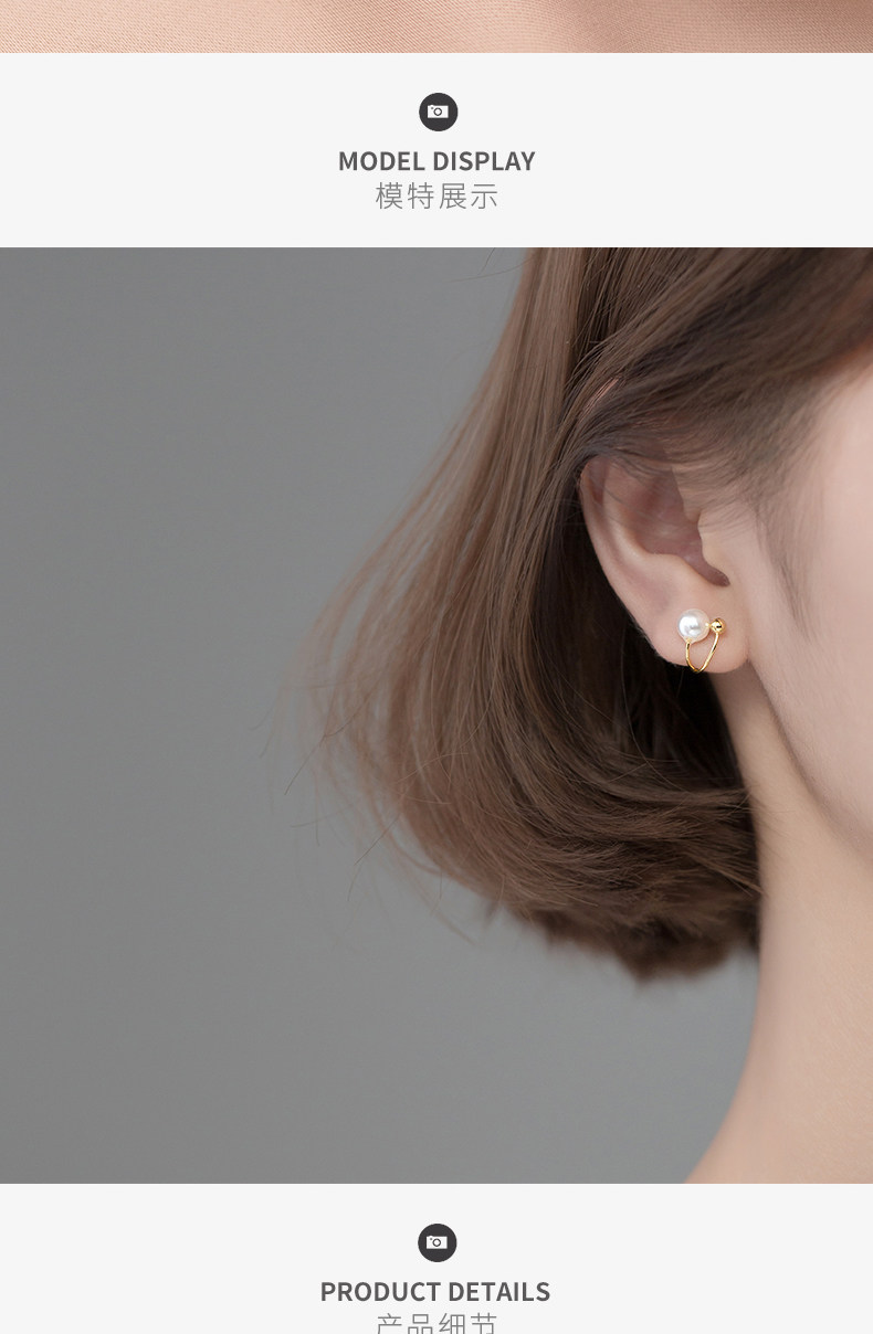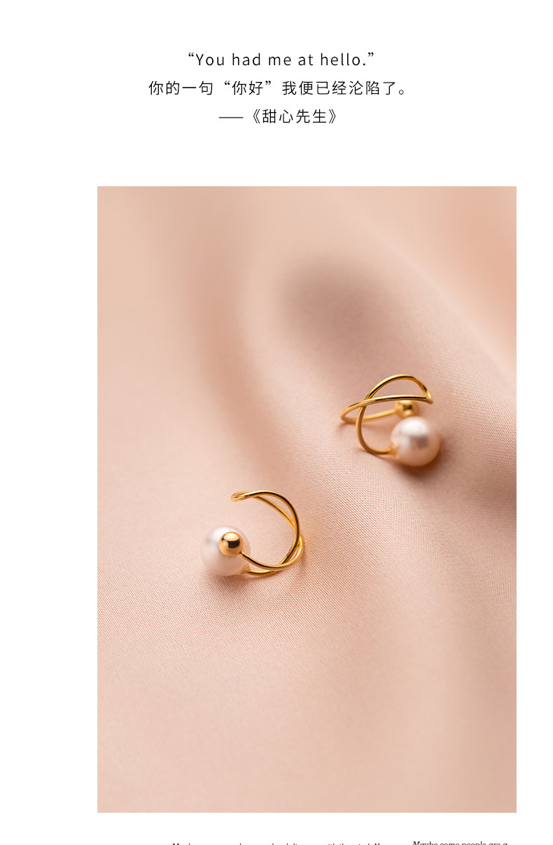 Eloch s925 plata simple perla sintética sin agujeros de orejas orejas temperamento línea cruzada orejas G7439