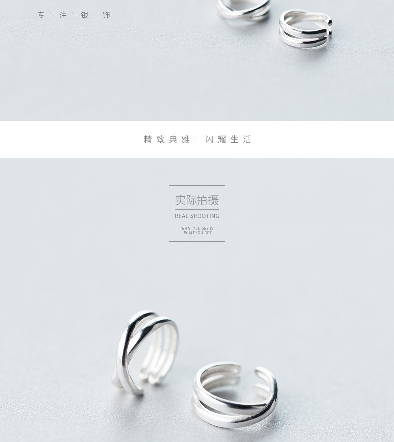 S925 clip de orejas de plata para mujeres moda coreana de doble capa clip de orejas cruzado sin agujeros de orejas pernos E3049