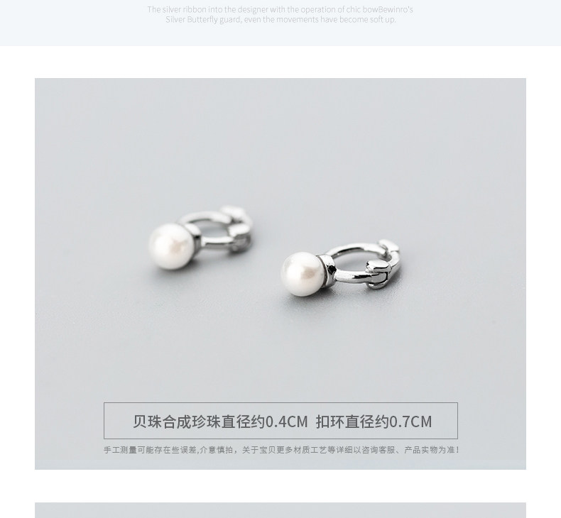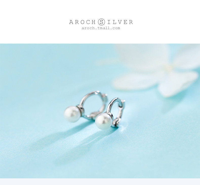 Eloch s925 botón de orejas de plata para mujeres coreanas simple perlas sintéticas pendientes de perlas temperamento pendientes compactos E8772