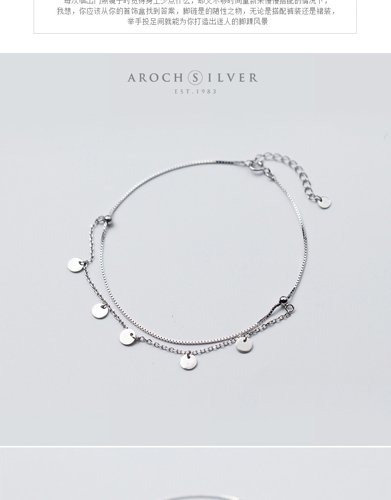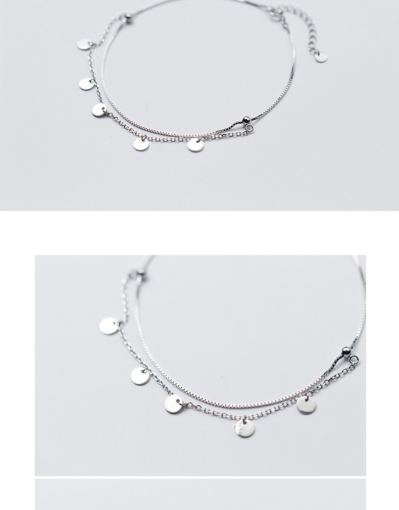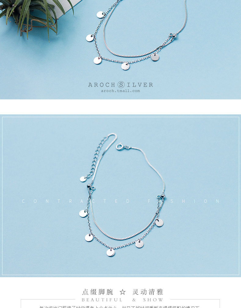 S925 plata mujer japonés estilo coreano doble tobilla personalidad geométrica circular joyería tobilla S1764