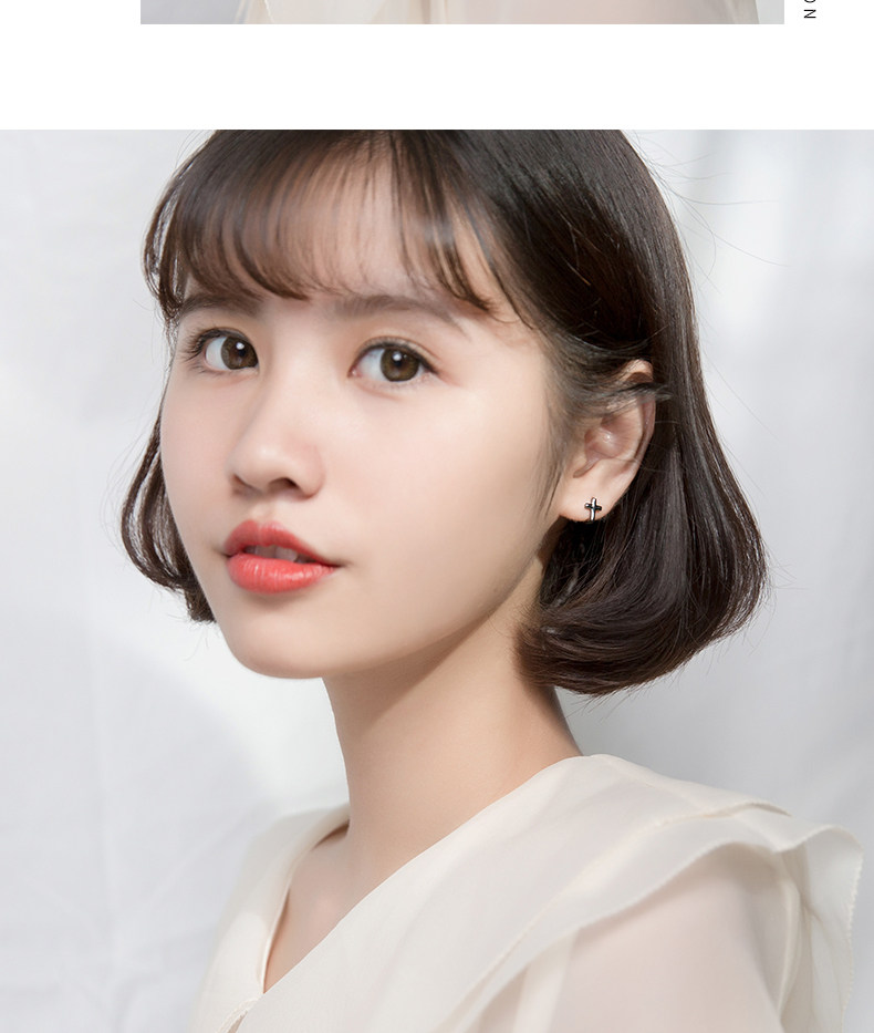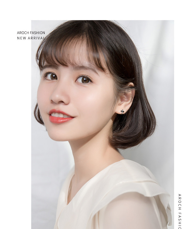 El Rocky S925 plata coreana de estilo cruzado de estudiantes de auriculares personalidad simple en adornos de auriculares dulces G3601