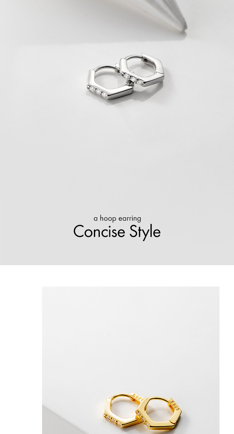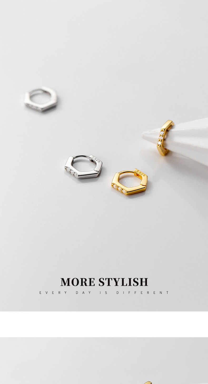 S925 plata mini hexagonal oreja hueso hexagonal pequeño perforación oreja perforación oreja geometría pequeña oreja G9095