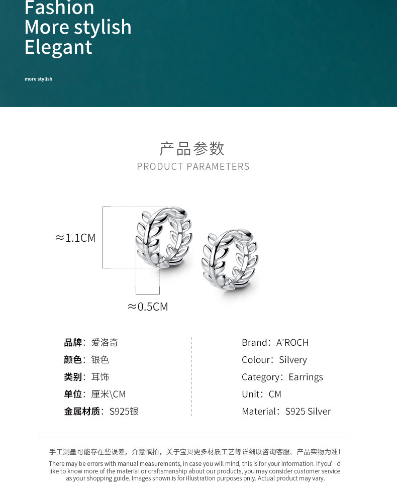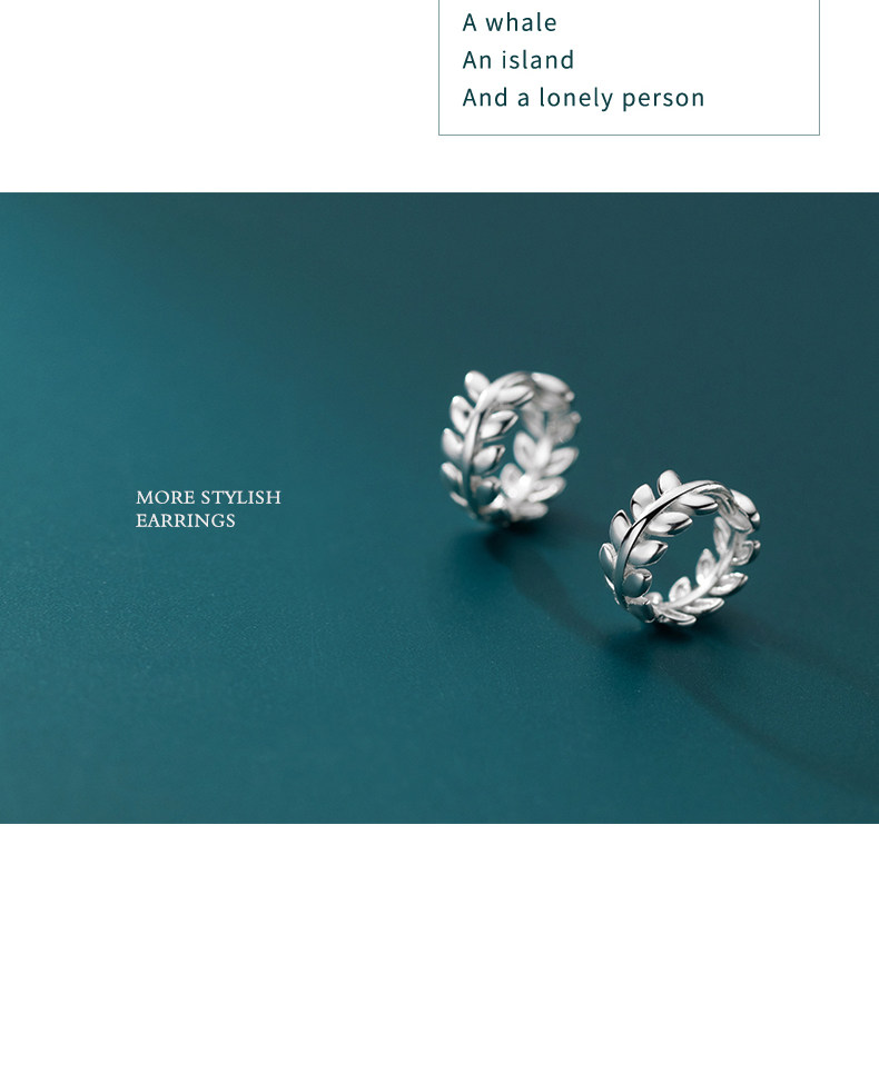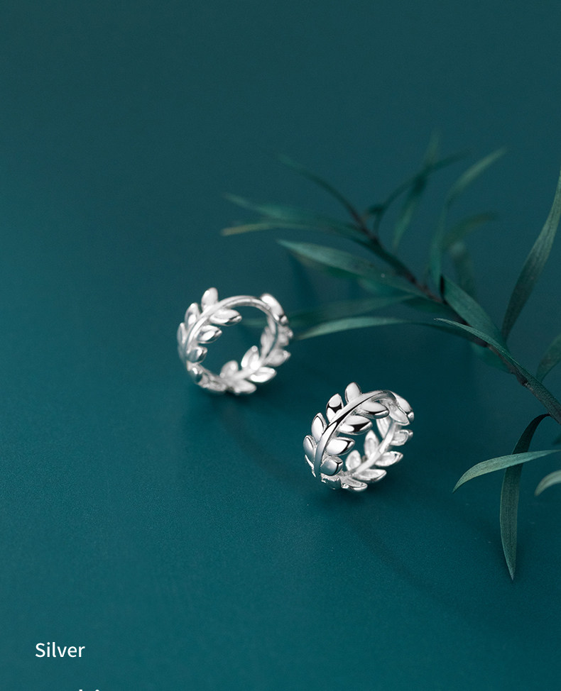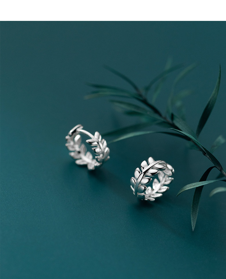 Eloch S925 Ginksen pequeño perfiles de oliva fresco temperamento compacto de hoja de dama aretes E7910