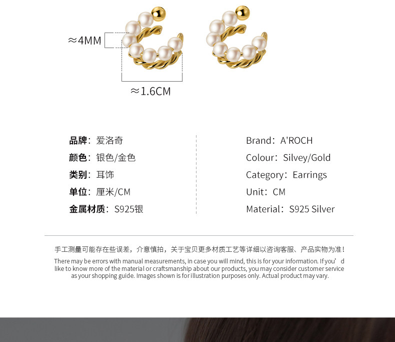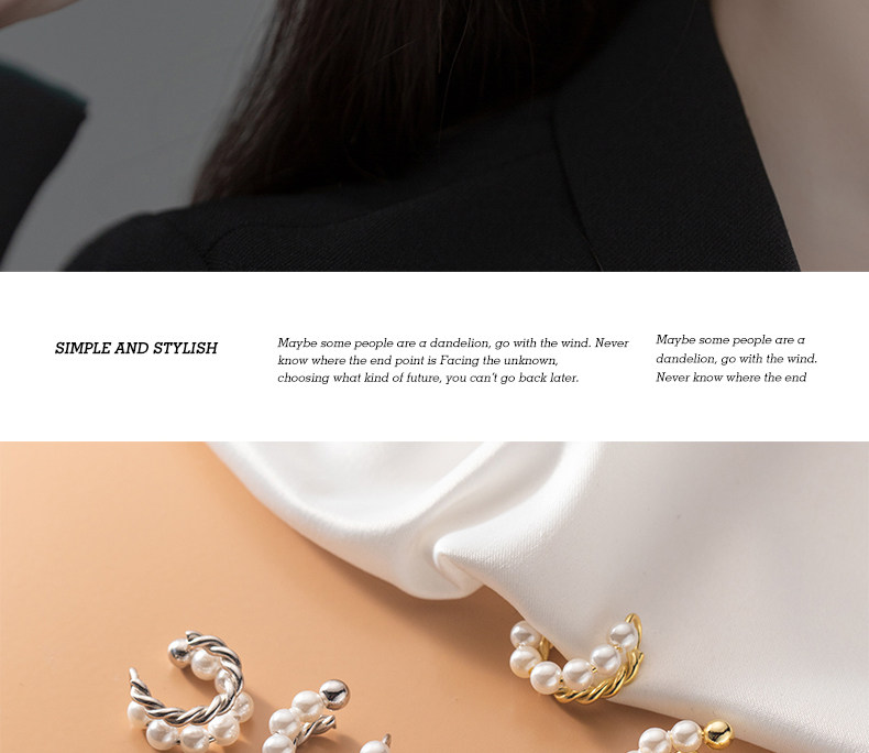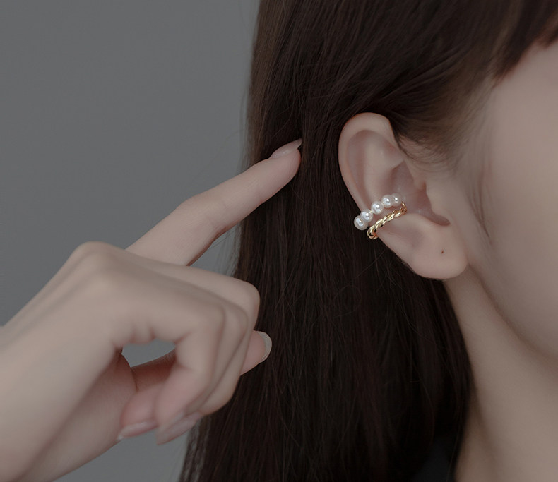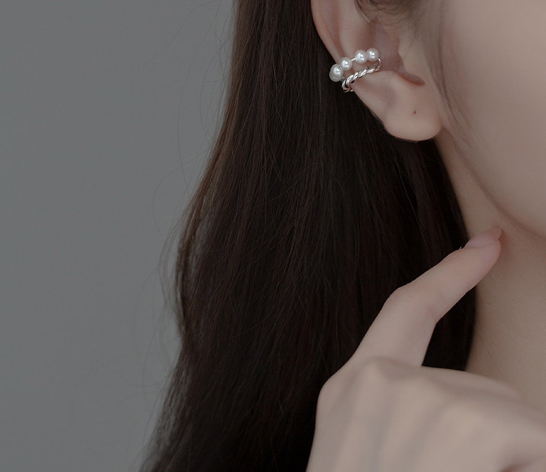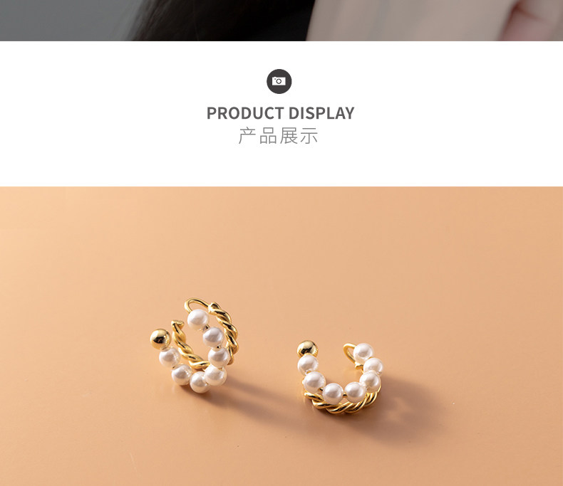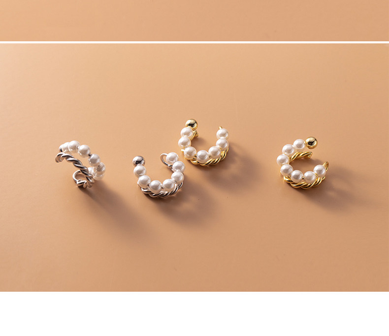 Eloch s925 plata francesa perla oreja hueso clips sin agujeros de oreja perlas sintéticas orejas de perlas torcidas M00453
