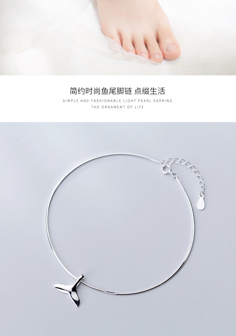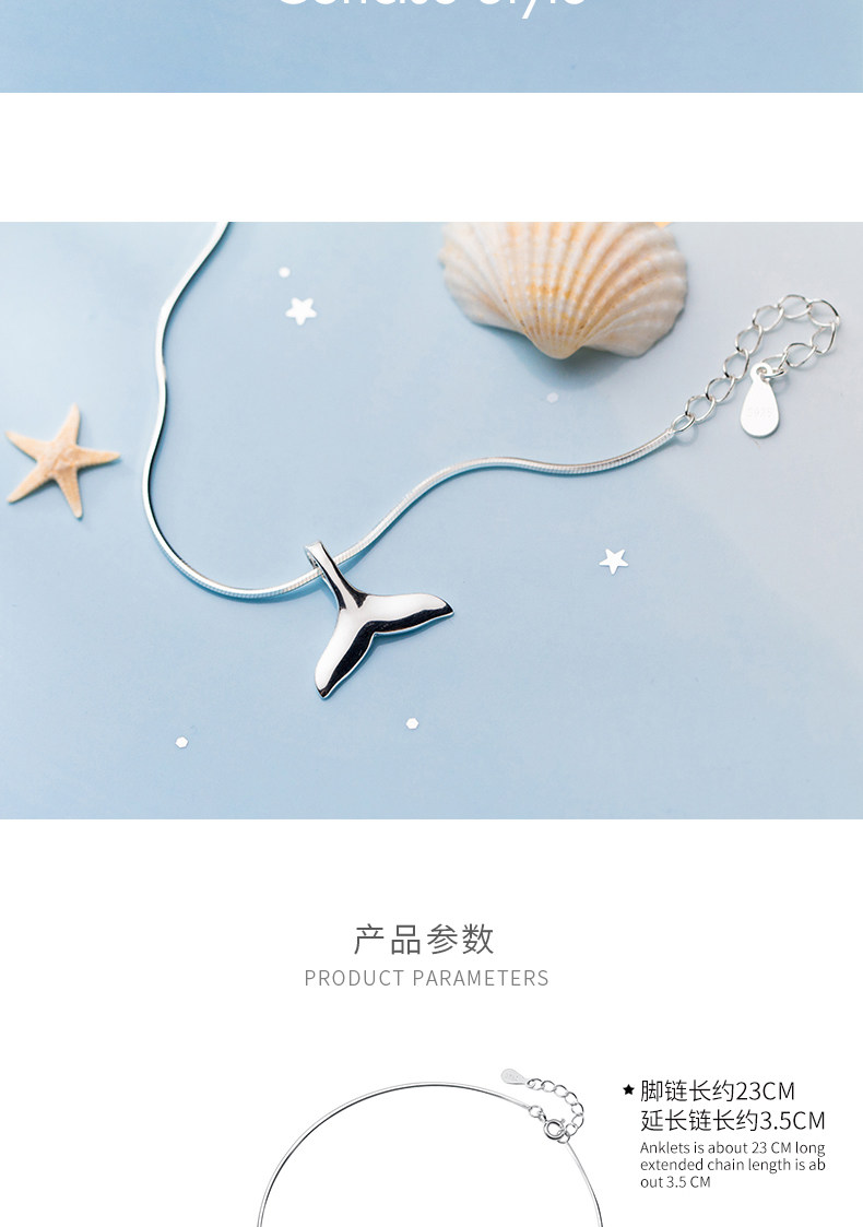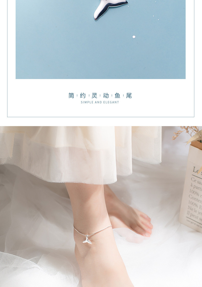 S925 tobillas de plata japonesas y coreanas Fengsen frescas tobillas de cola de sirena temperamento pequeño adorable joyas de pies S2474