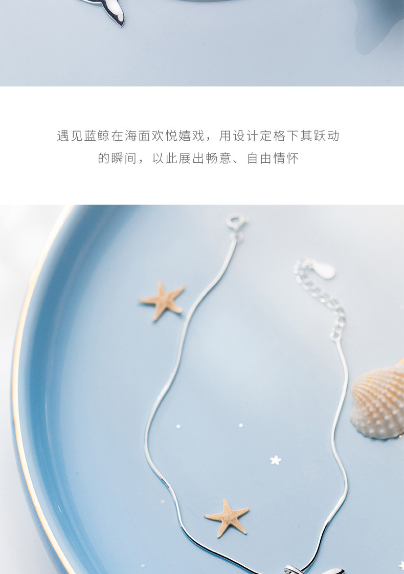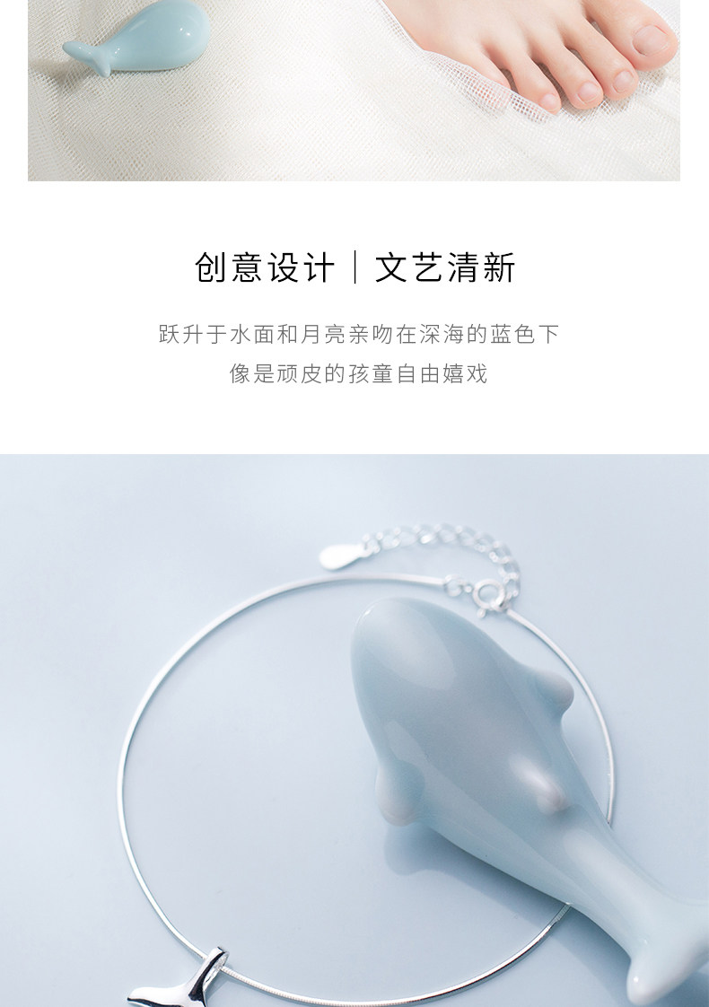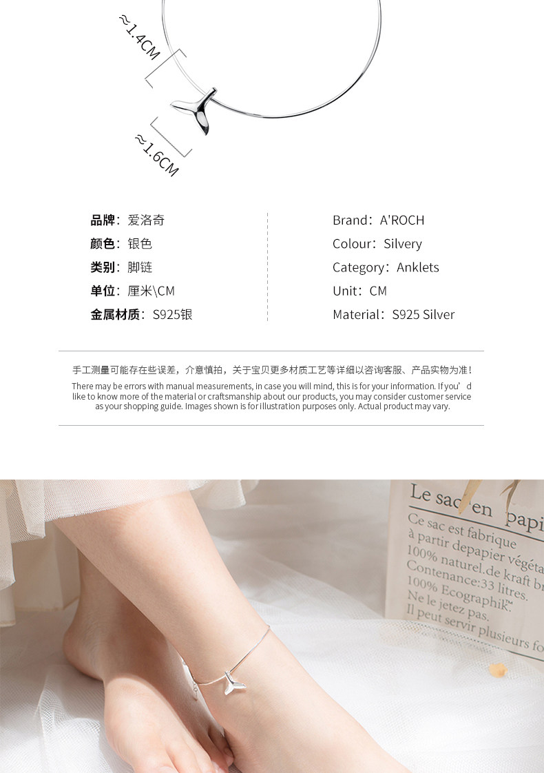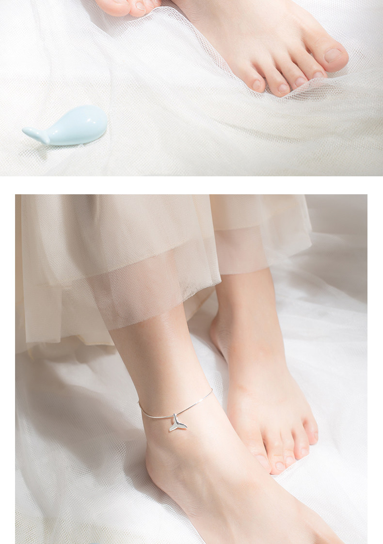 S925 tobillas de plata japonesas y coreanas Fengsen frescas tobillas de cola de sirena temperamento pequeño adorable joyas de pies S2474