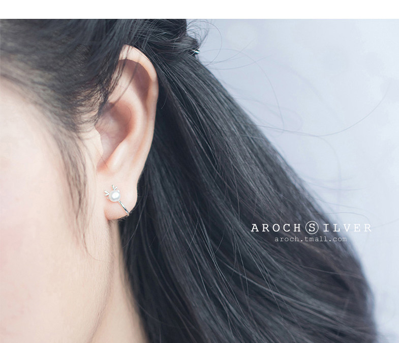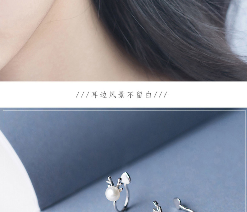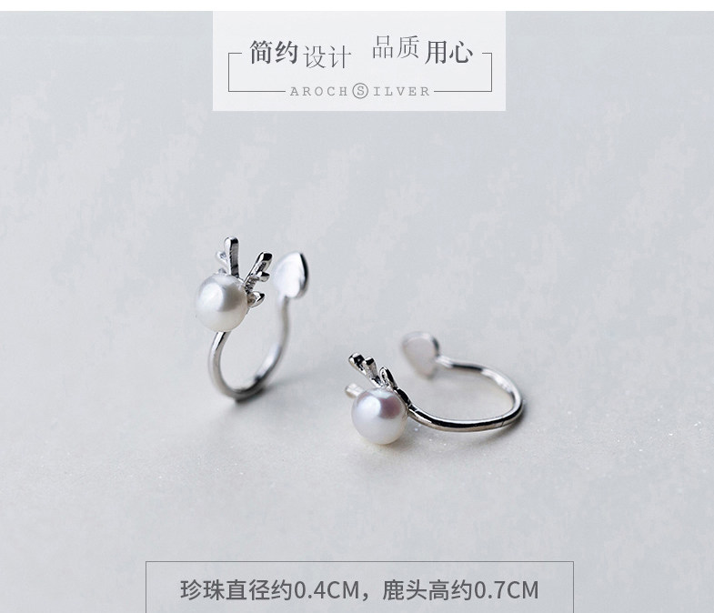 S925 plata esterlina croquetas de navidad adorables perlas de alce sin agujeros de orejas de cuerno de ciervo E5904