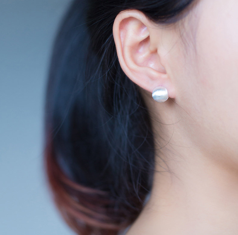 Pendientes de bola redonda cepillado de plata de ley S925, estilo europeo y americano, lujo ligero, temperamento de moda, diseño personalizado, pendientes, pendientes E0320