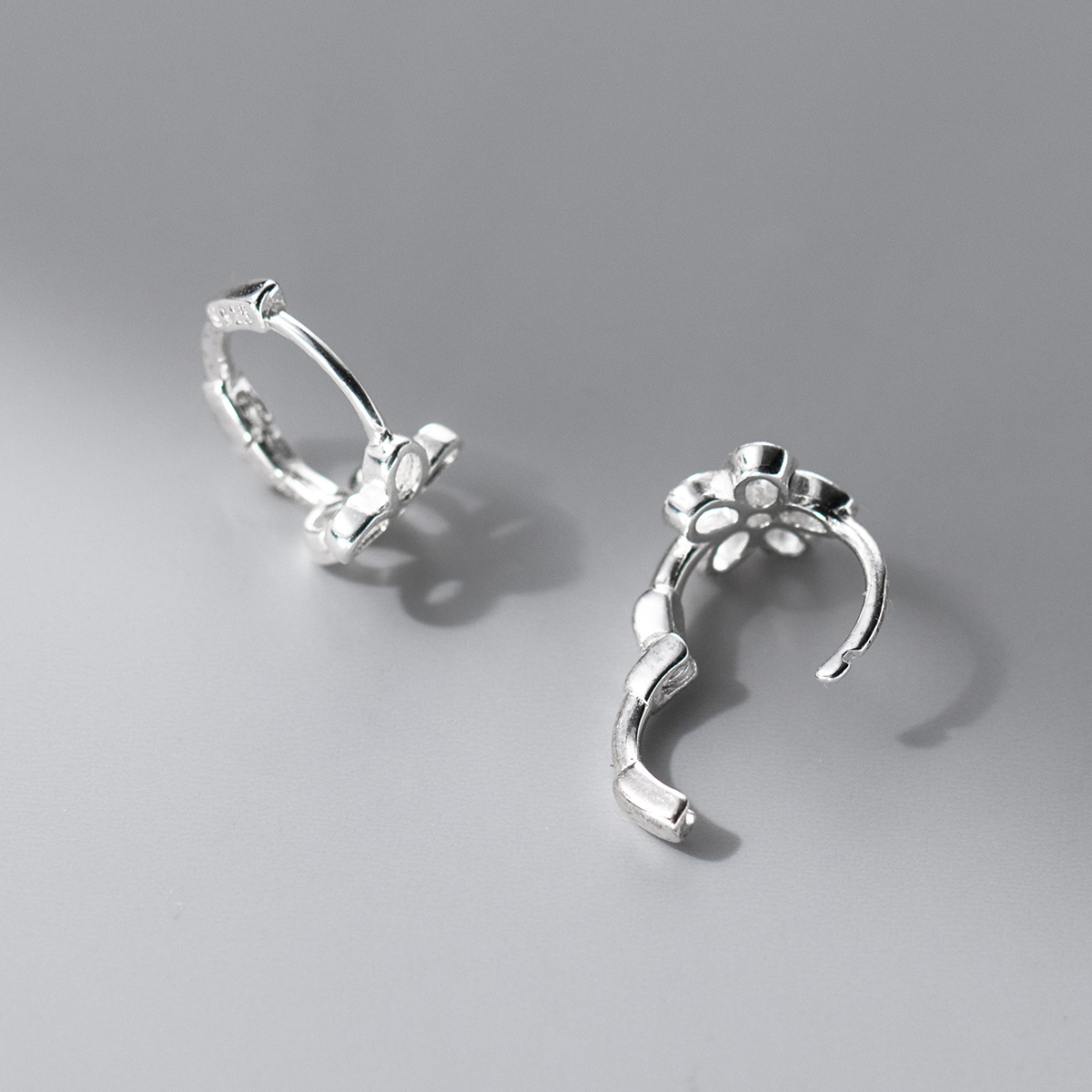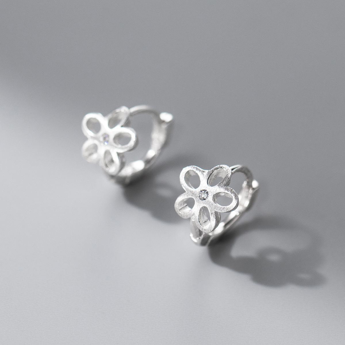 Eloch S925 plata esterlina ins viento pequeño fresco hueco de un solo diamante flor perfiles de orejas simple orejas de mujer M04550