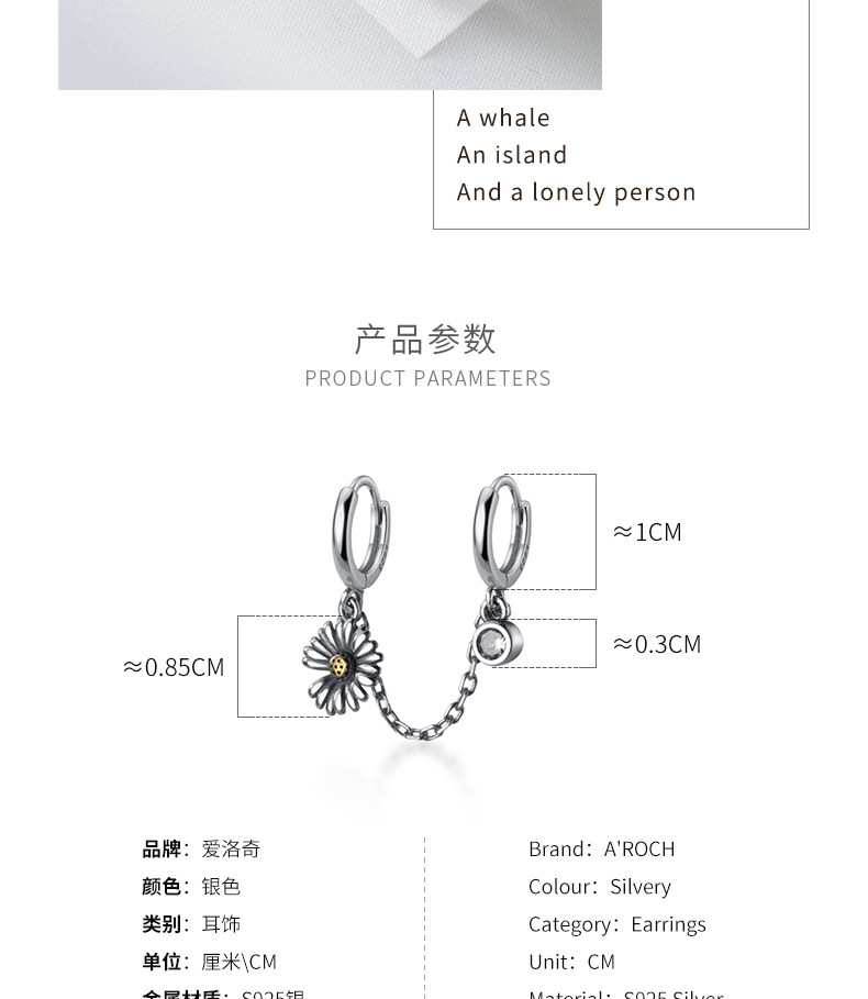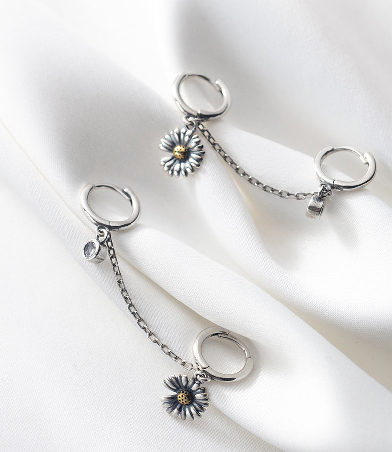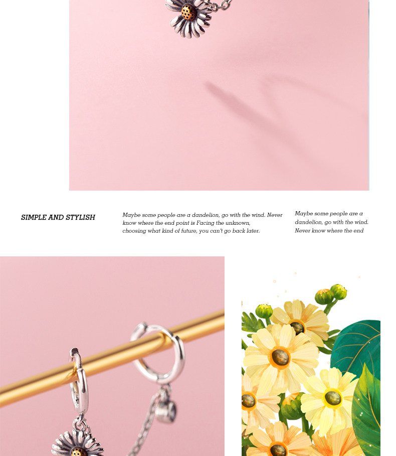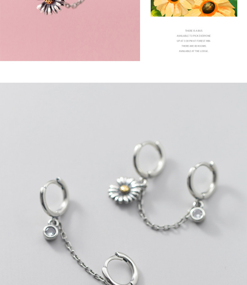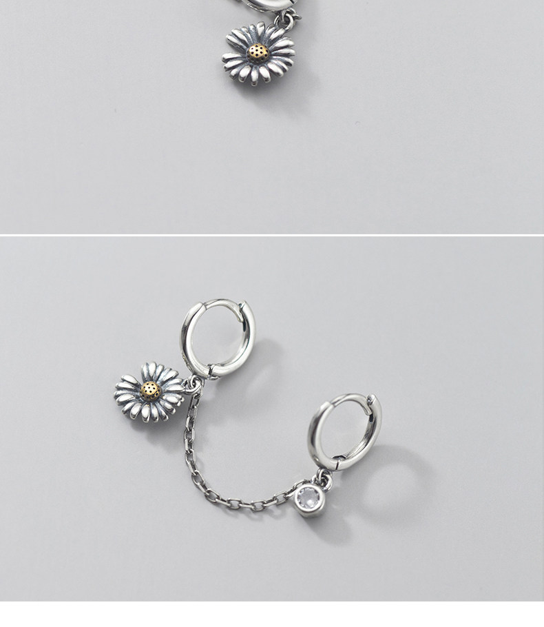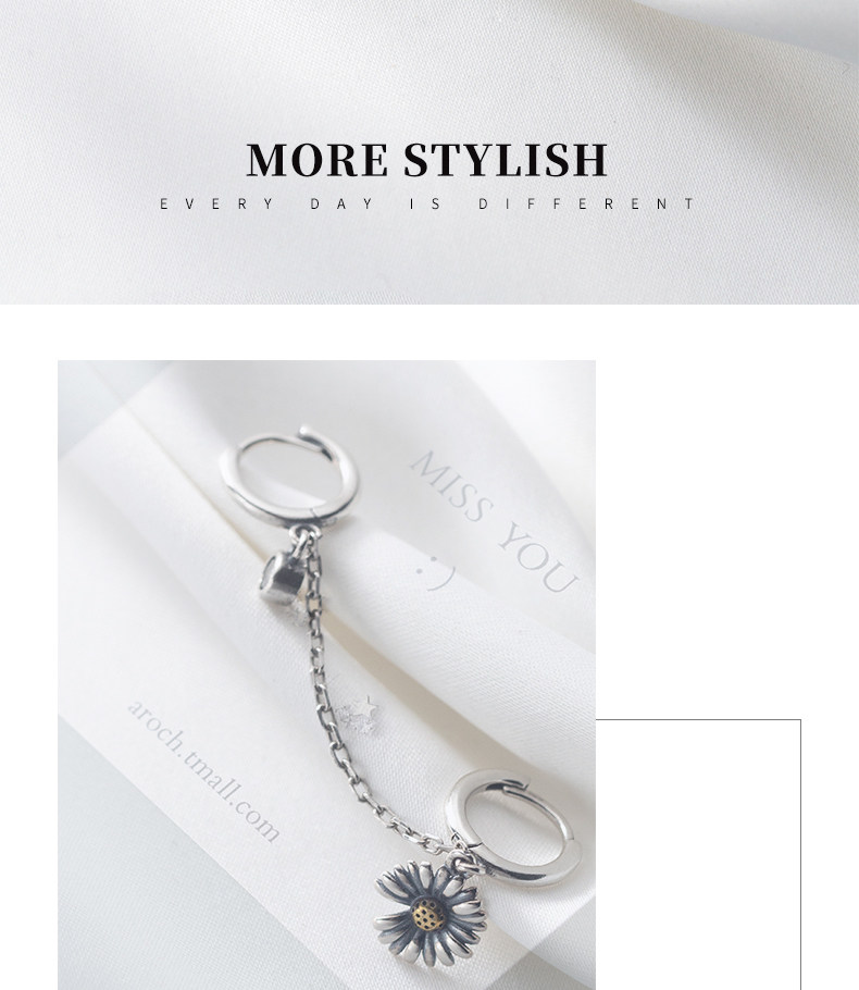 Eloch s925 botón de orejas de plata para mujeres coreanas tailandesas plata estilo retro planta pequeña margarita agujeros de orejas joyas de orejas G6764