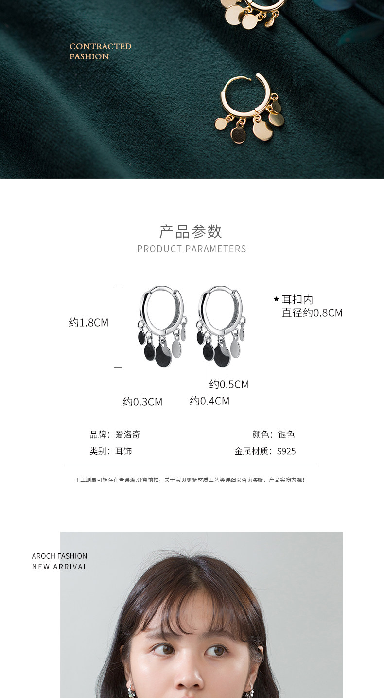 S925 pendientes de plata pendientes redondos geométricos pequeños frescos pequeños bordes de disco simple de moda pendientes G1747