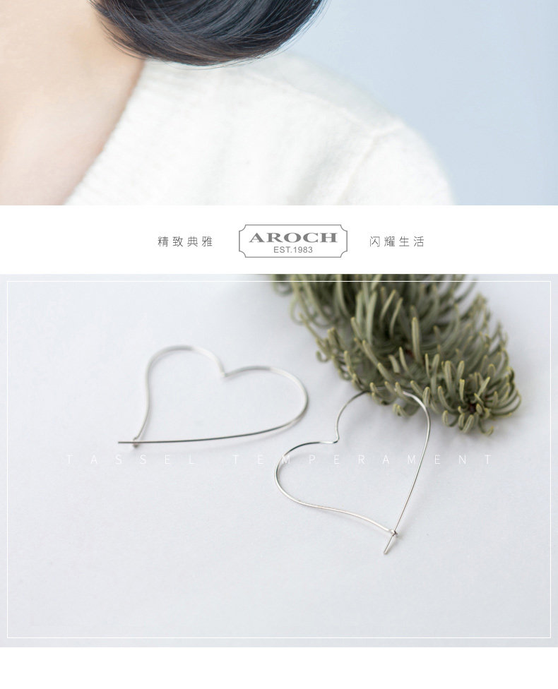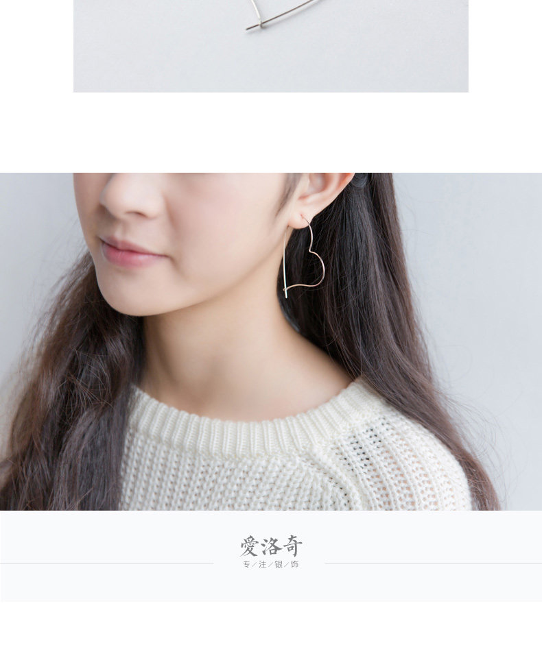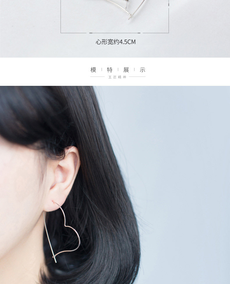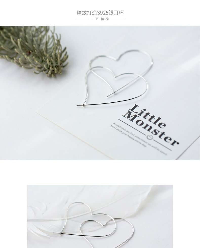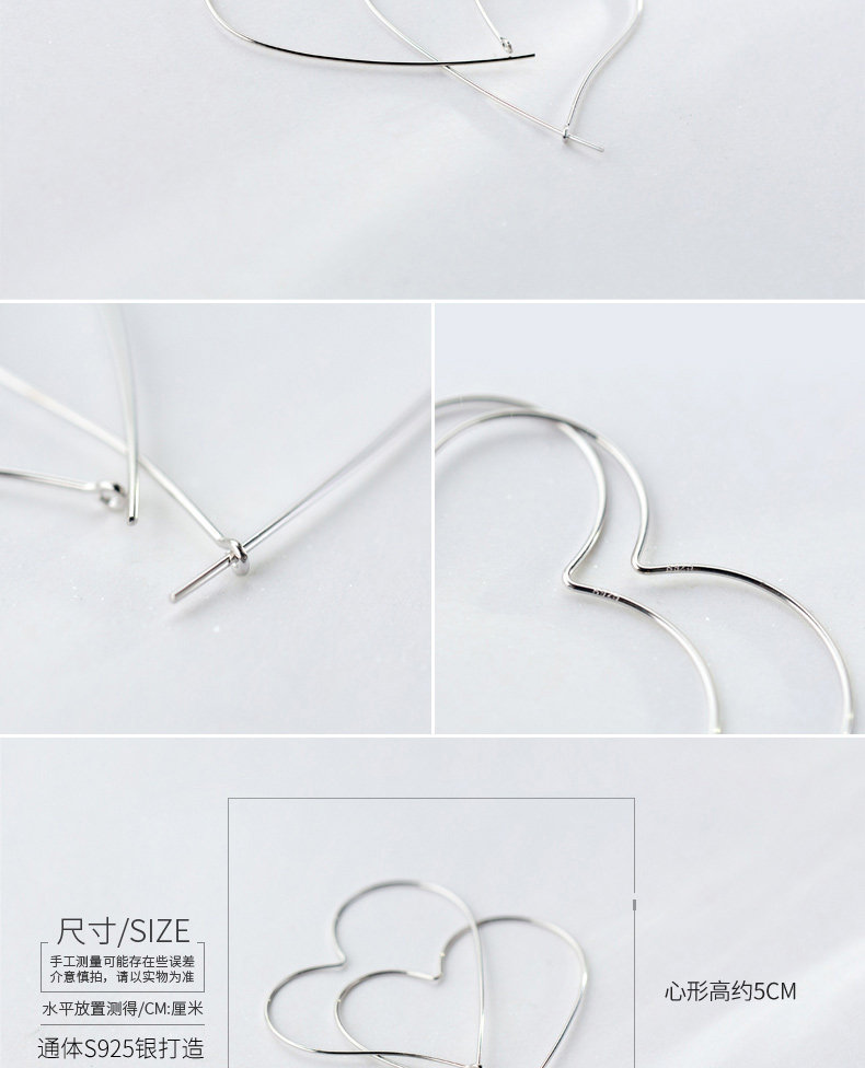 S925 pendientes de plata pendientes de orejas mujeres hueco gran amor aretes dulces temperamento grandes aretes temperamento joyas de orejas E4626