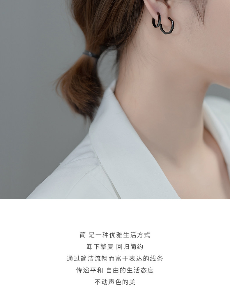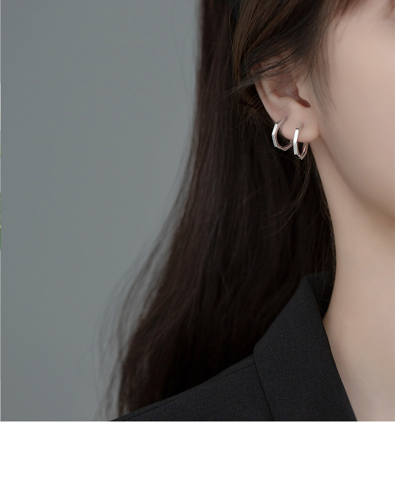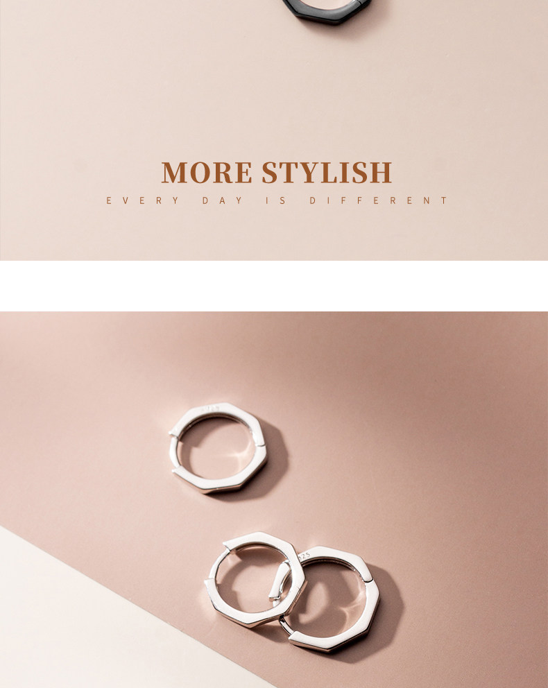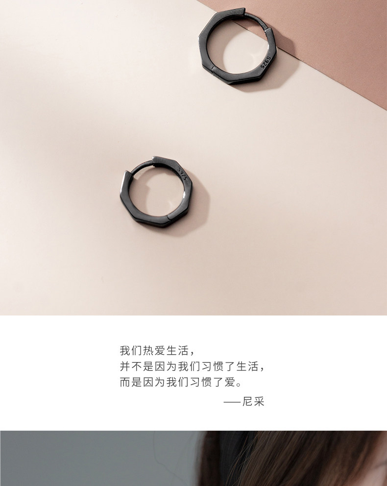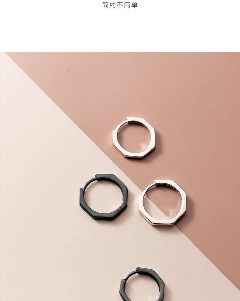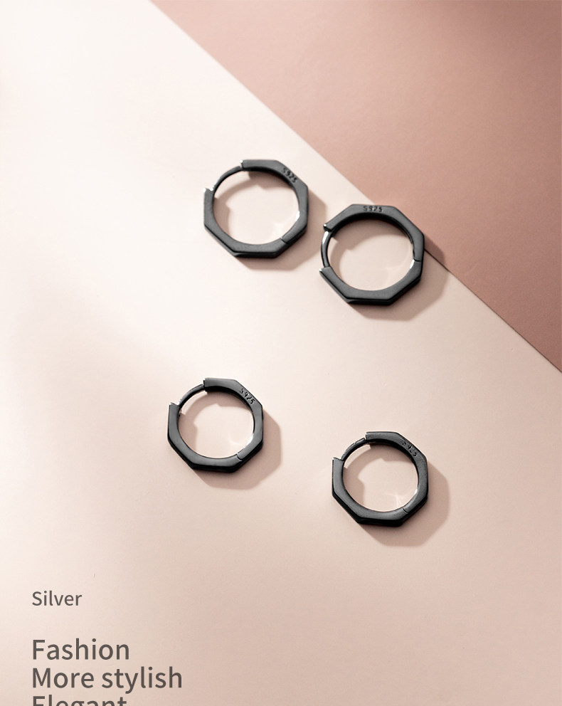 Eloch s925 plata octagonal perfiles de orejas negro geometría simple universal red popular orejas de orejas E7897