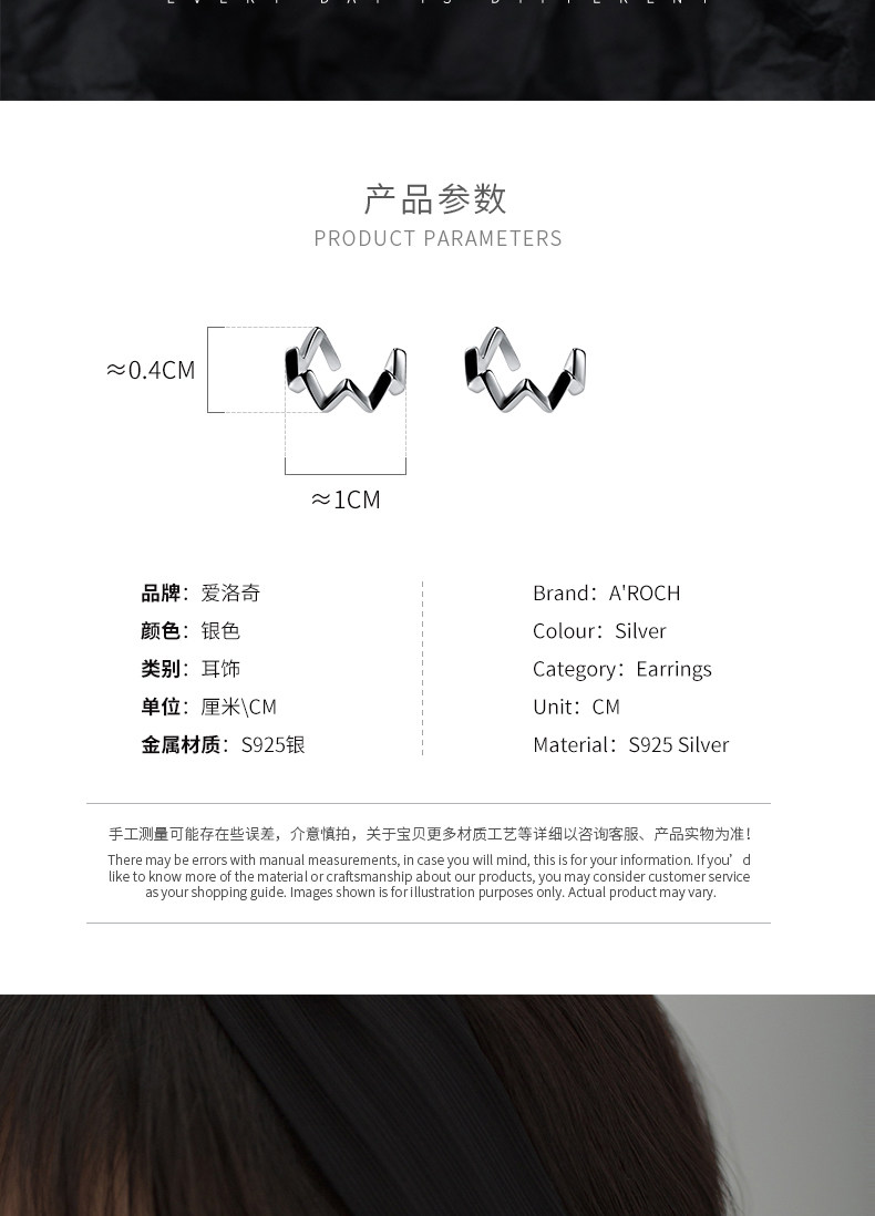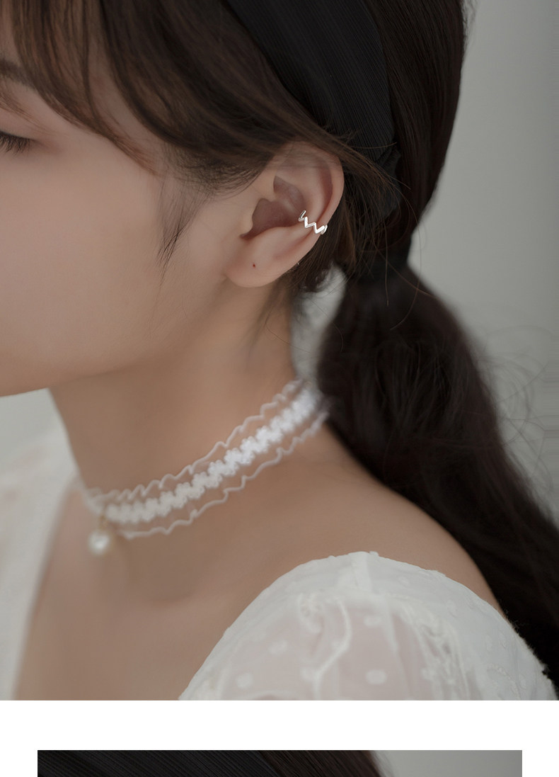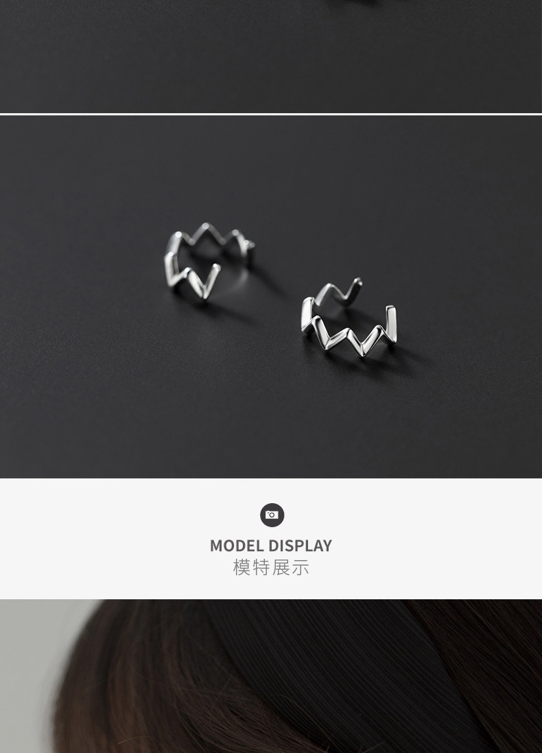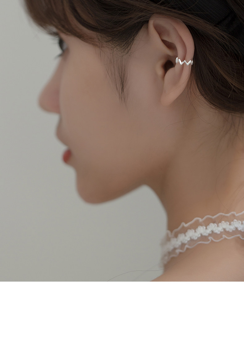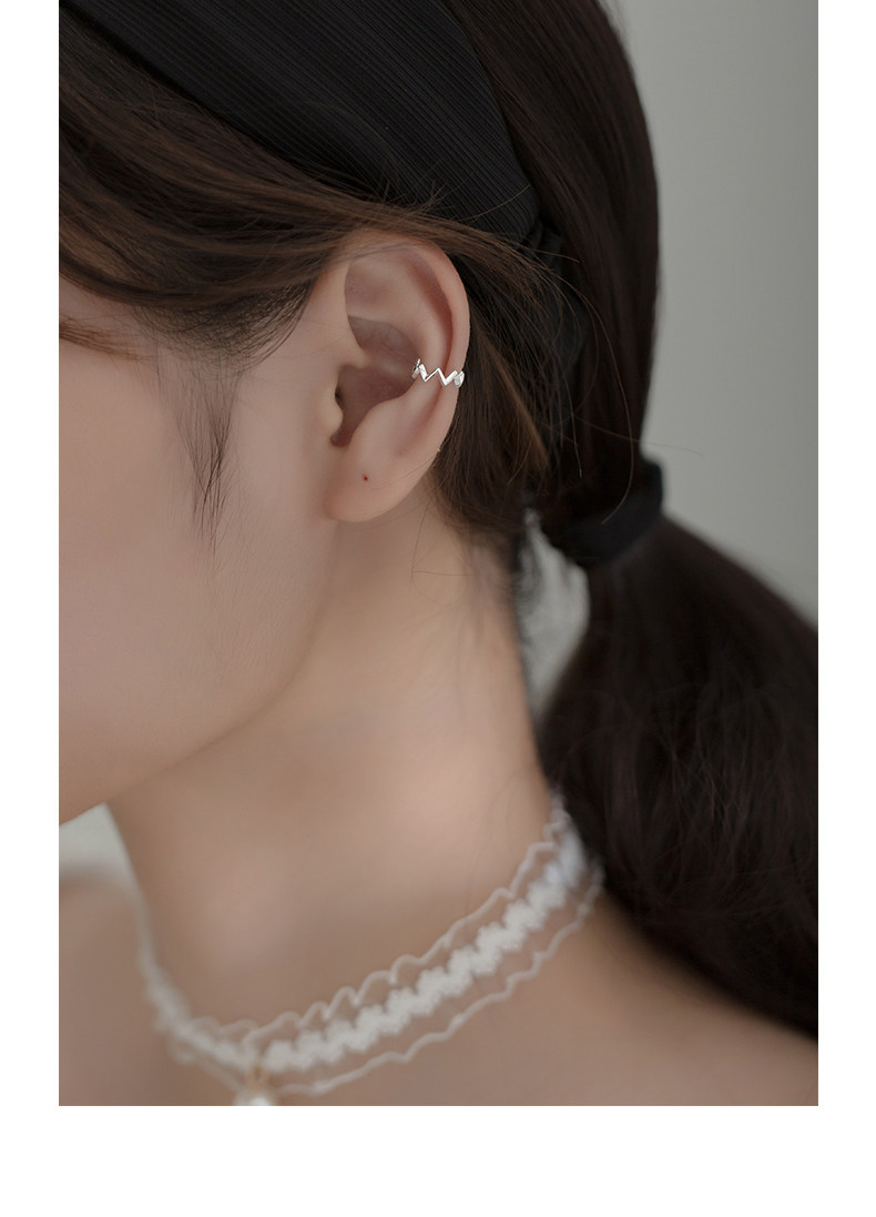 Eloch S925 plata corazón latido orejas línea ondulada sin agujeros de orejas simple coreana orejas de hueso orejas G5927