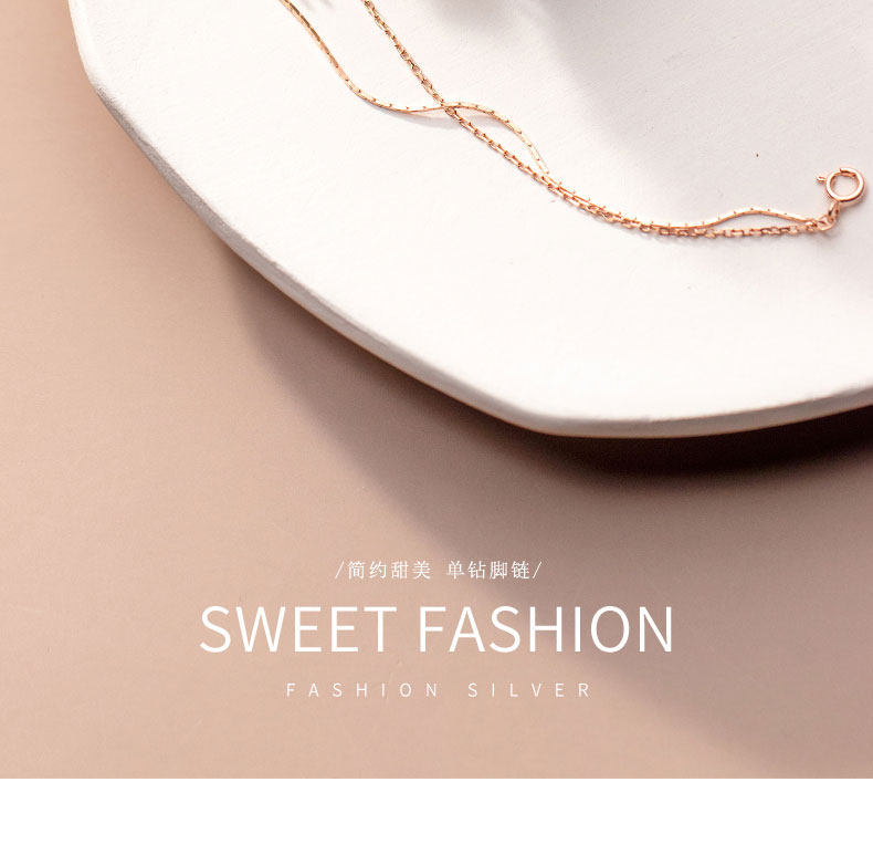 S925 tobillar de plata oro rosa