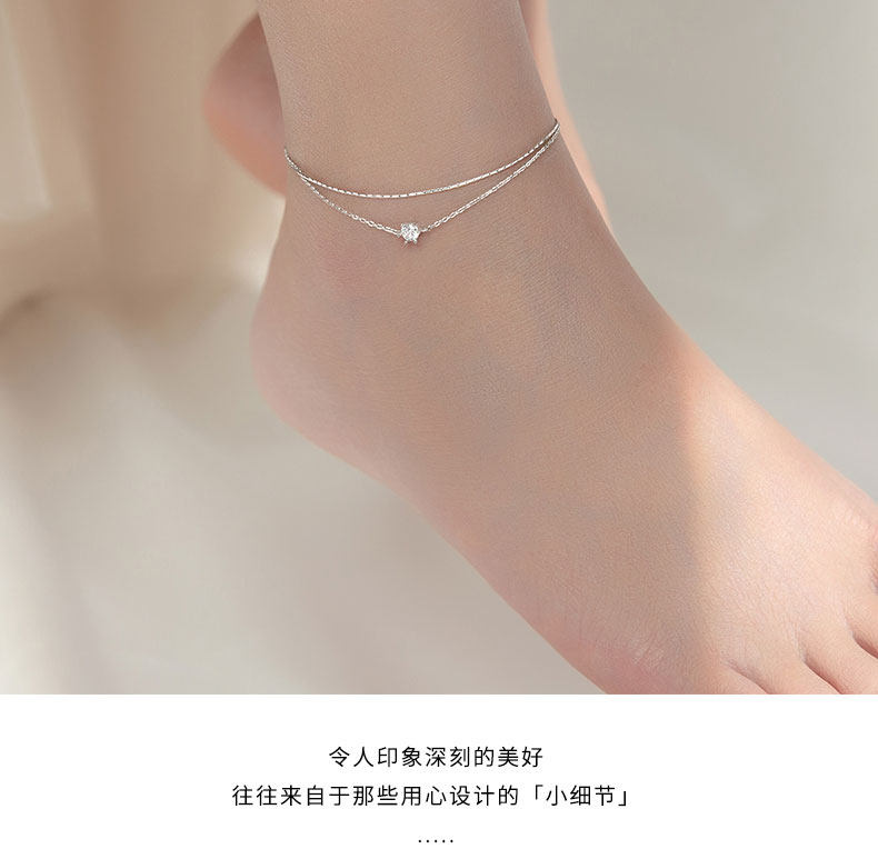 Eloch s925 plata mujer coreana temperamento dulce doble capa de seis garras un solo diamante joyas de pie de cadena de hueso de serpiente S4391