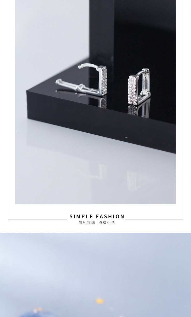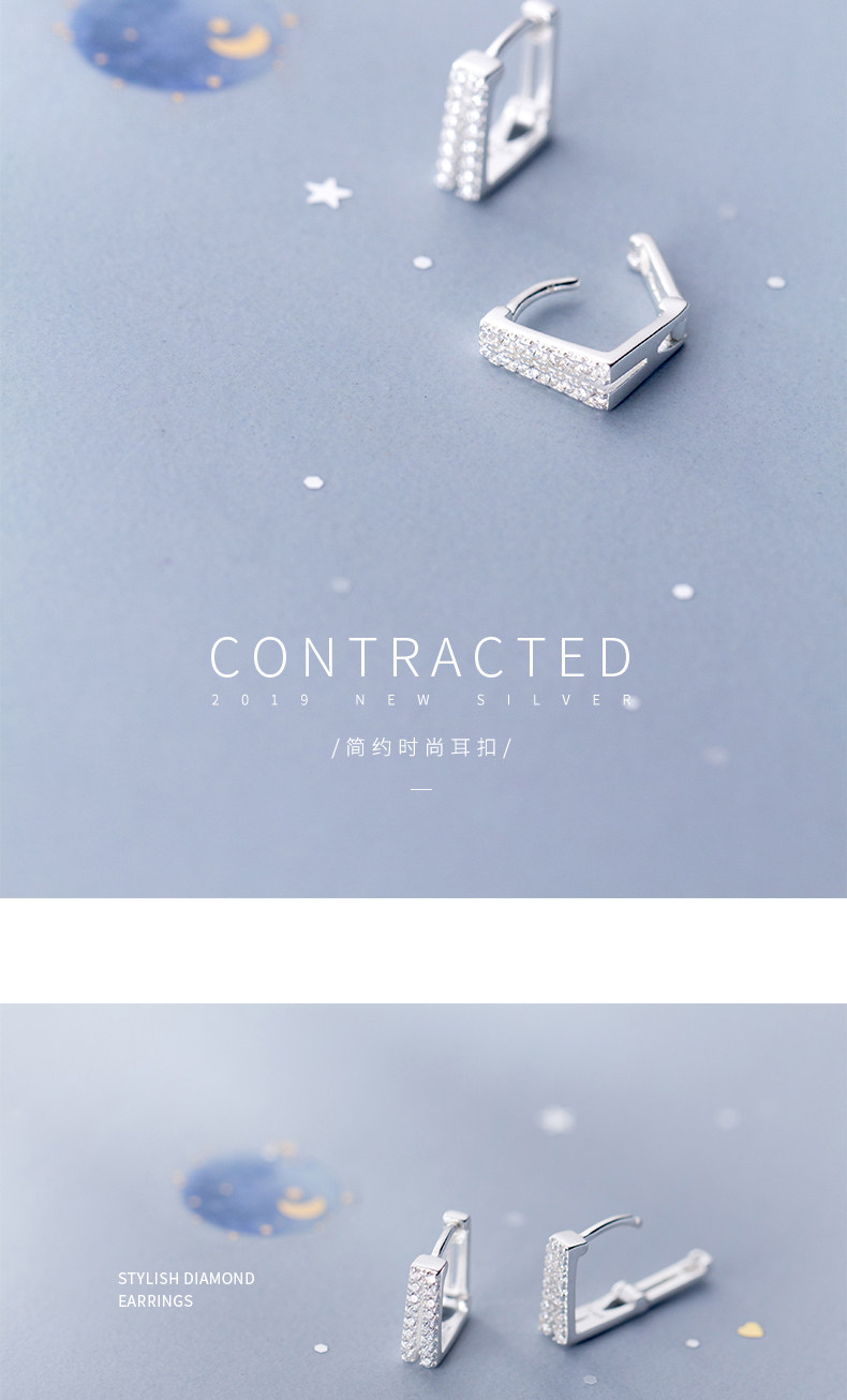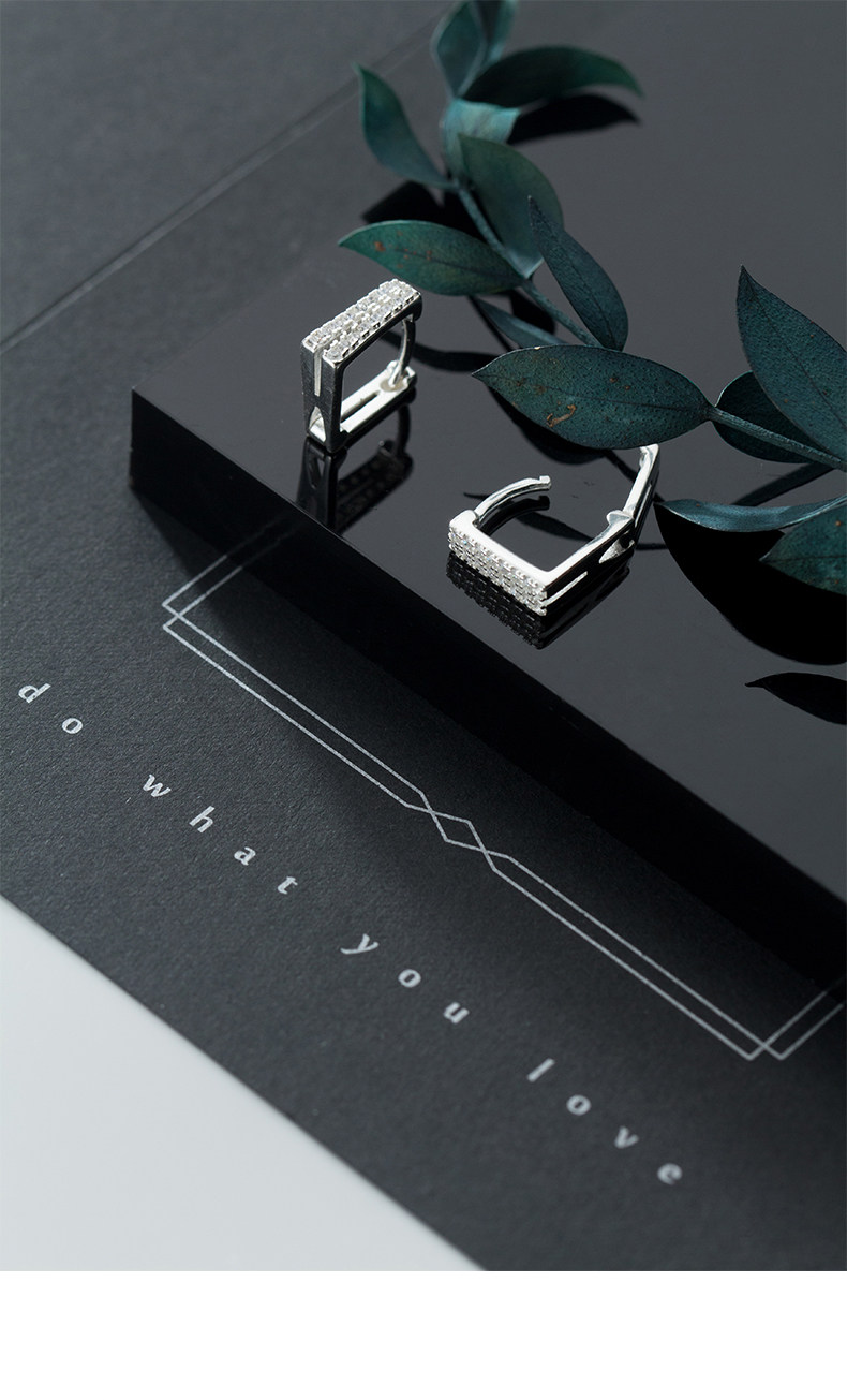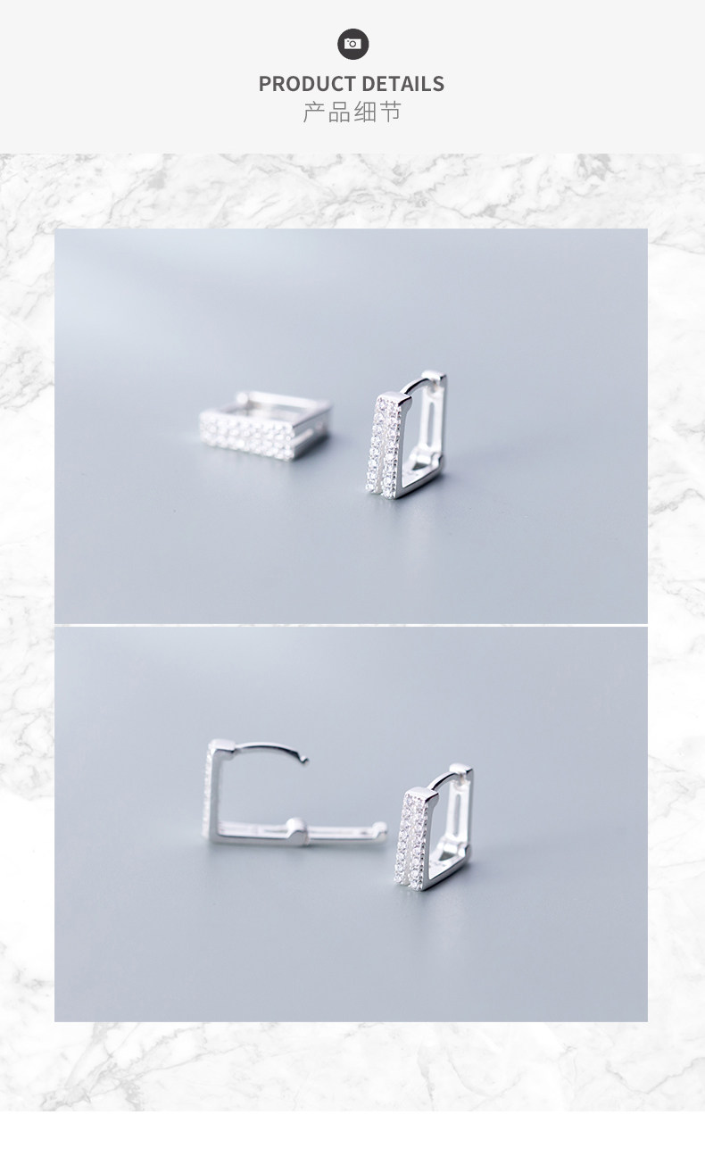 S925 Botón de hongo blanco Mujer Estilo japonés Simple Doble capa Diamante Cuadrado Pendientes cortos Geometry G1759