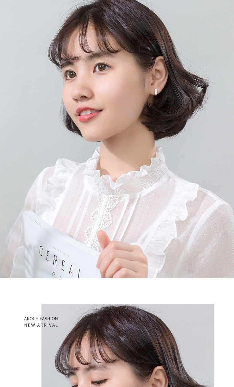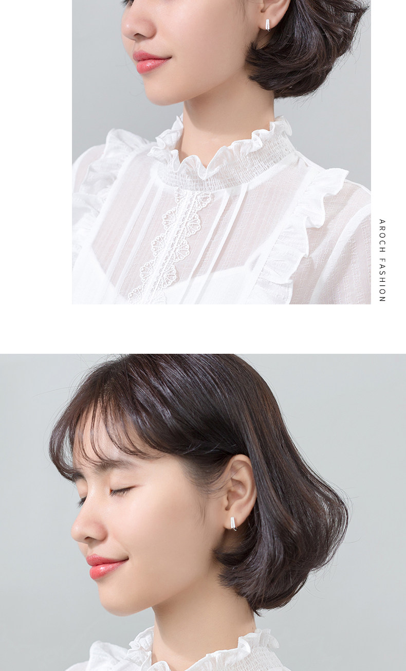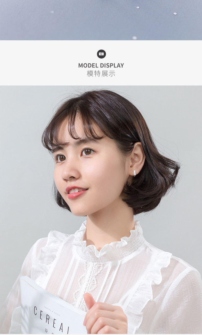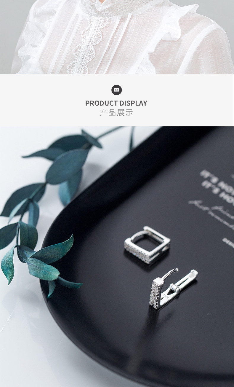 S925 Botón de hongo blanco Mujer Estilo japonés Simple Doble capa Diamante Cuadrado Pendientes cortos Geometry G1759