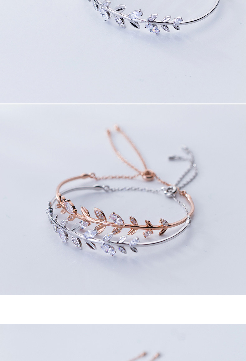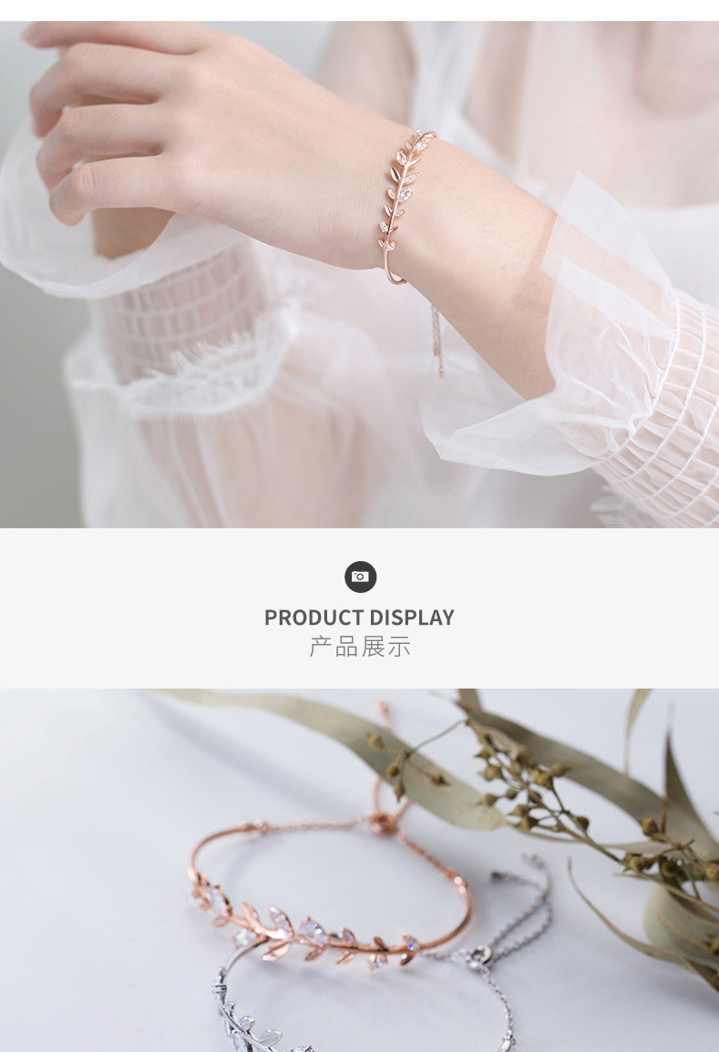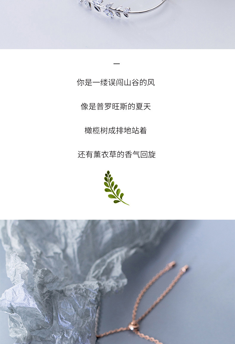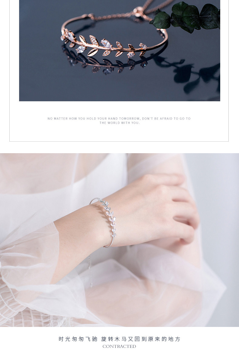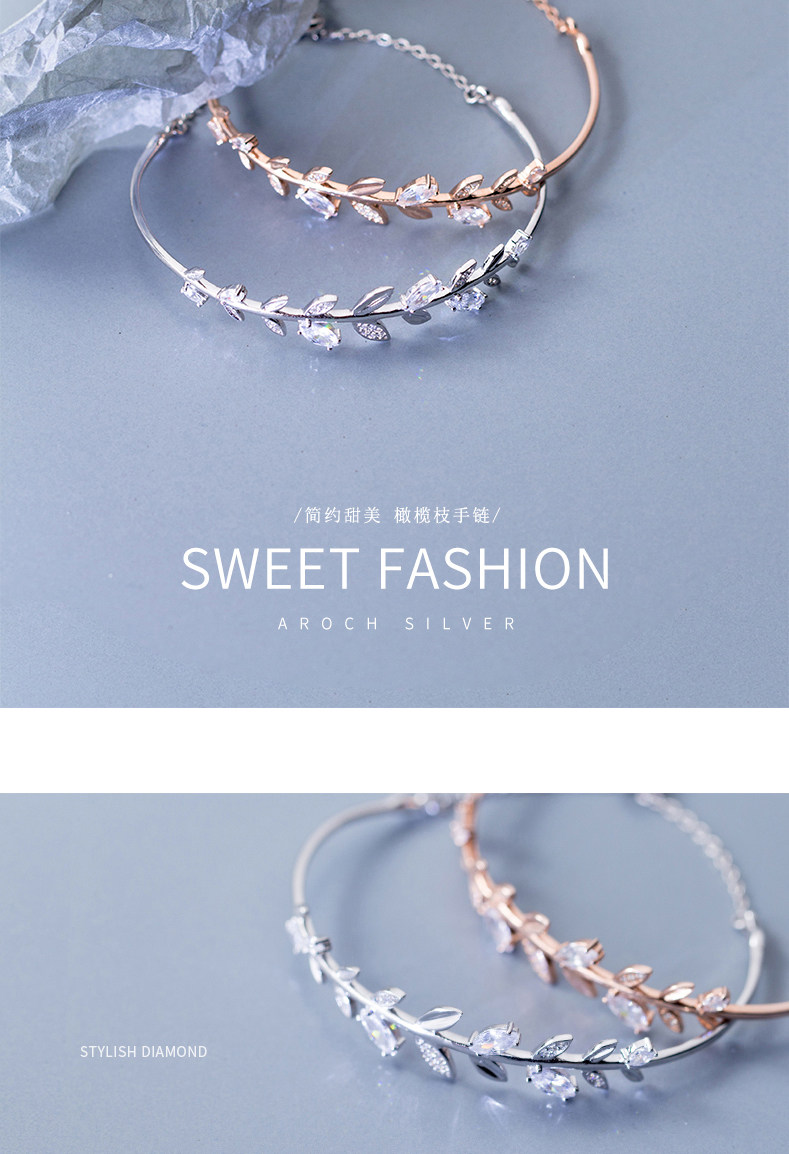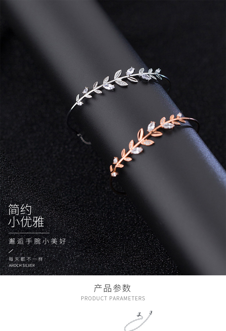 S925 pulsera de plata para mujeres coreanas pequeñas hojas de diamantes frescas ajustables joyas de hoja de oliva S2776