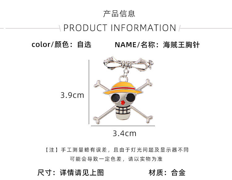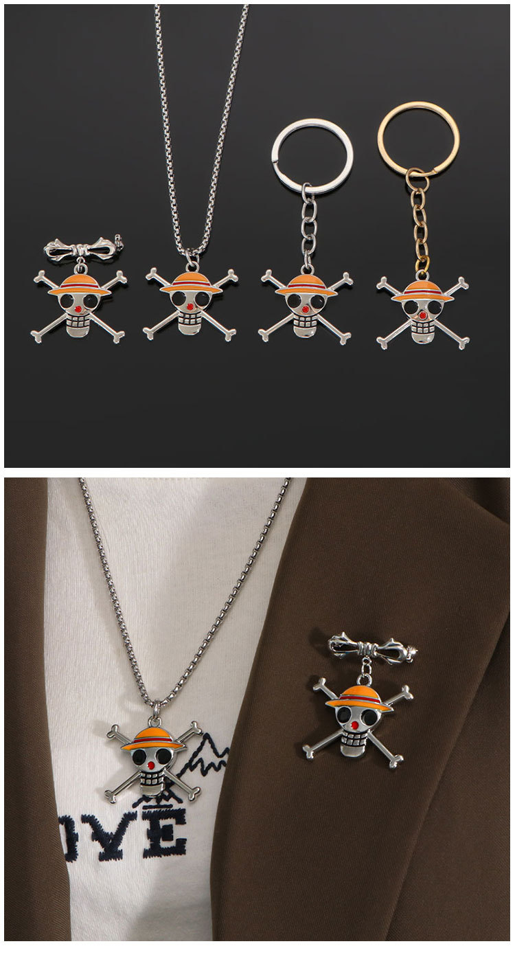 Decoraciones de aleación periférica de una pieza, sombrero de paja, calavera, broche de camino, colgante, llavero, collar, accesorios de ropa
