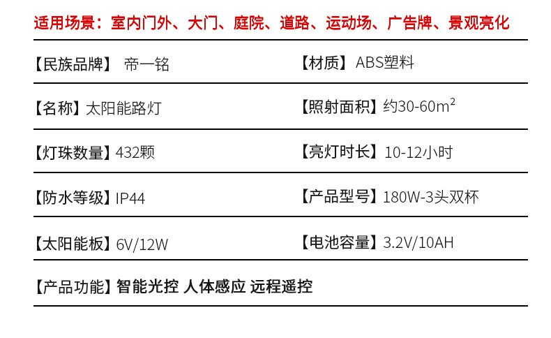 Luz de calle solar Luz de jardín solar al aire libre Inducción del cuerpo humano al aire libre Iluminación rural Luz de calle integrada led