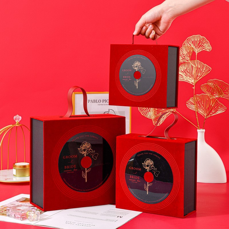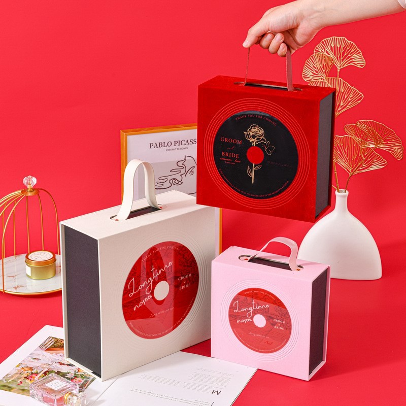 El amor tiene una caja de regalo de mano reverberante caja de mano de dama de honor caja de regalo de franela caja de dulces de boda caja de regalo de disco de gran capacidad