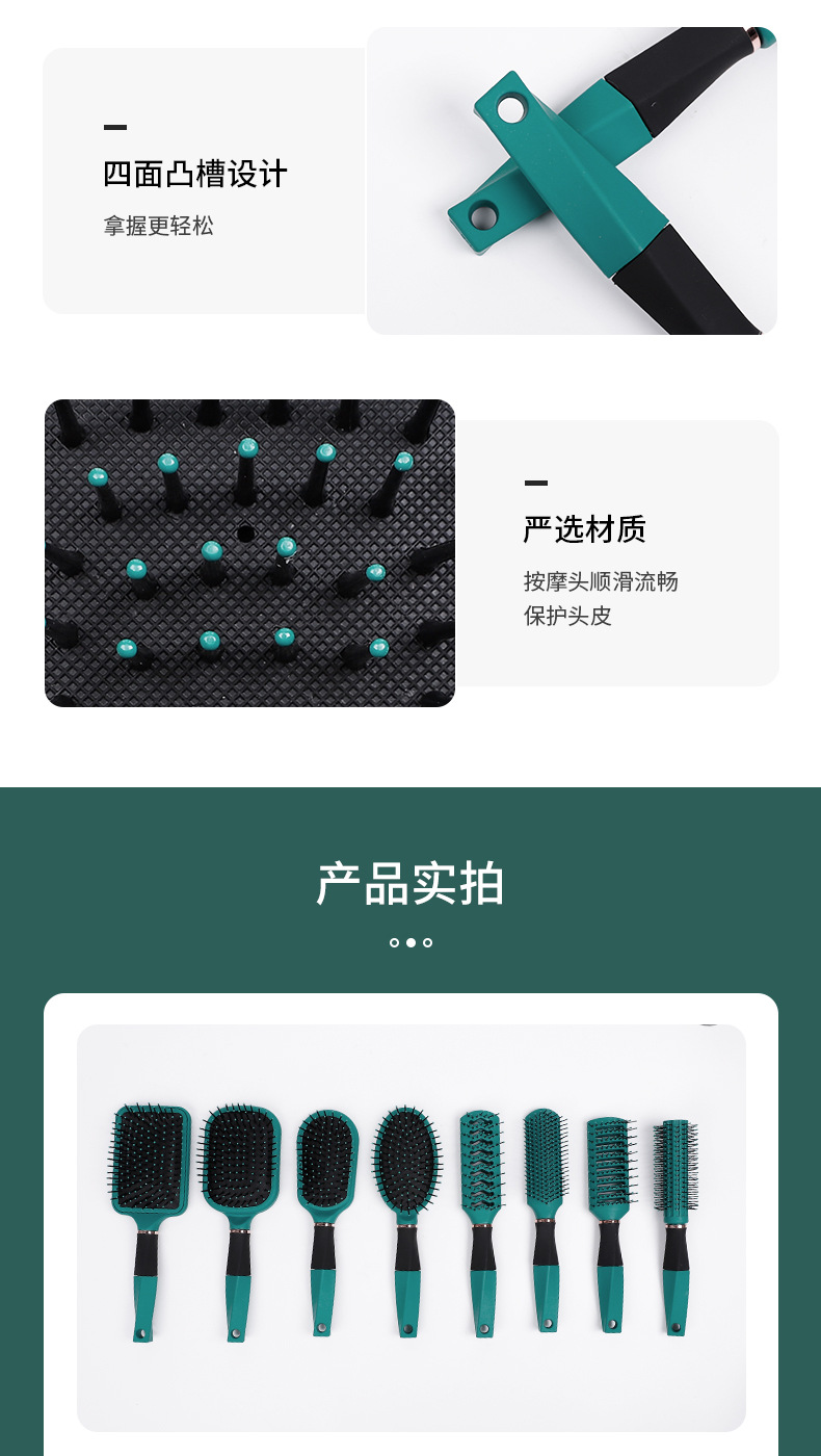 Peineta para el cabello transfronteriza, suministro de peine de masaje, peine de recuerdo, juego de peine verde malaquita, peine rizado de regalo, peine curvo grande