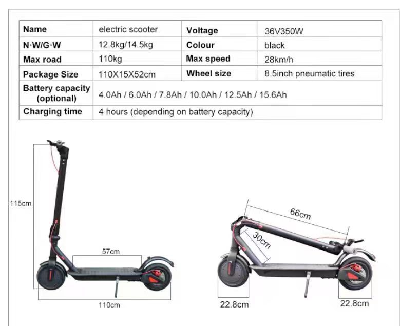 Suministro directo de fábrica 350W alta potencia 8,5 pulgadas adultos m365 Scooter Eléctrico plegable Scooter Eléctrico