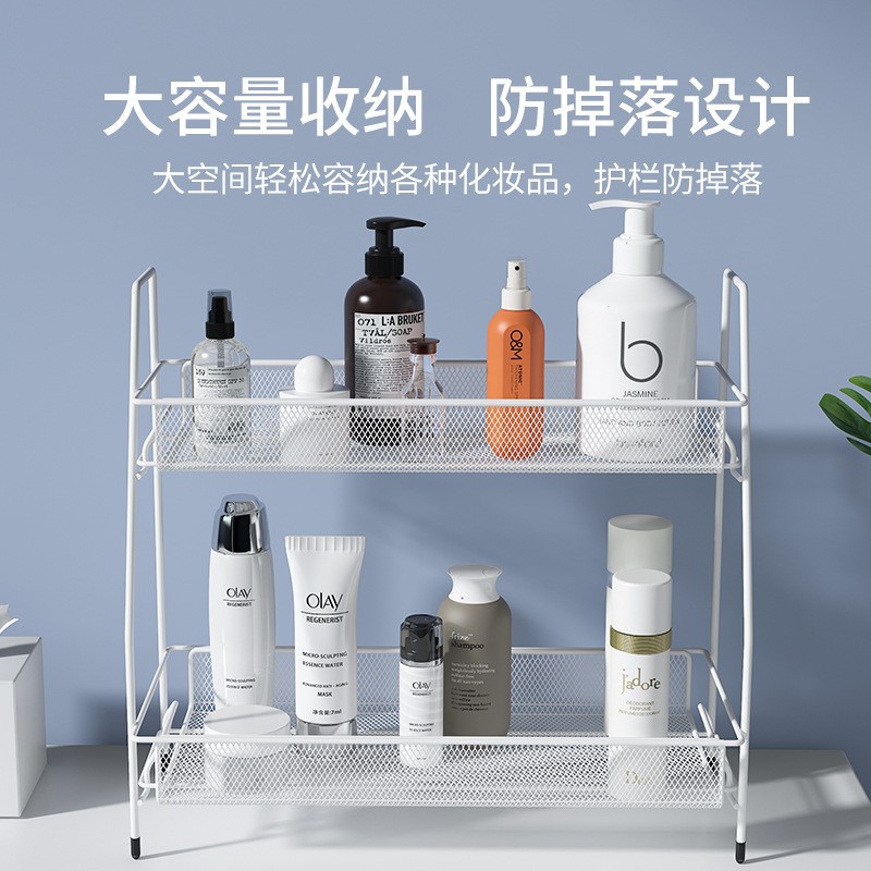 Estante de almacenamiento de hierro forjado estante de almacenamiento de doble capa desmontable estante de condimento de cocina estante de acabado de cosméticos de baño