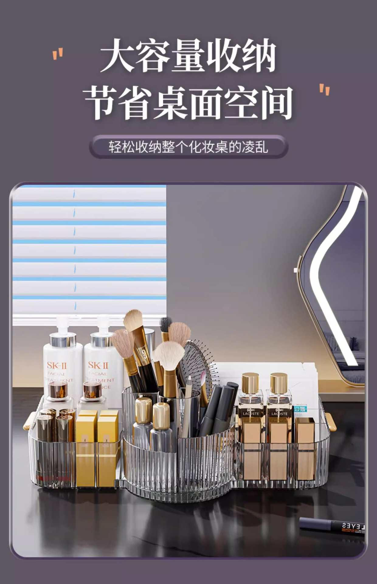Caja de almacenamiento de cosméticos escritorio acrílico transparente caja de gran capacidad dividida lápiz labial dormitorio estante de cepillo de maquillaje
