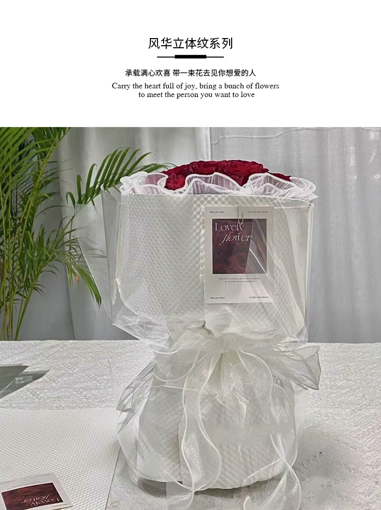 Papel de embalaje de ramo Papel tridimensional en relieve Papel de arte de lunares Papel de embalaje de flores de color sólido al por mayor