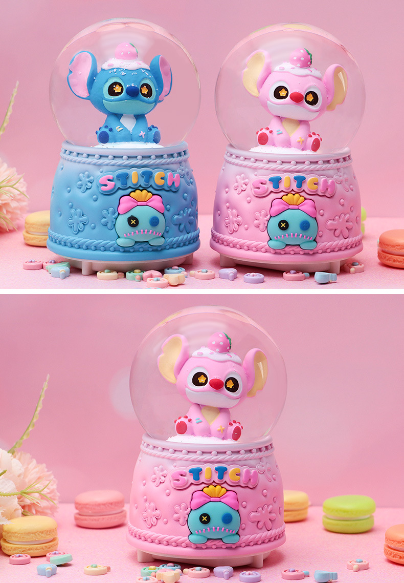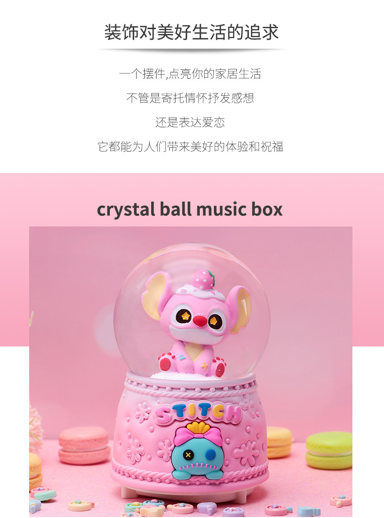 Linda y linda caja de música de bola de cristal Stitch, caja de música giratoria de nieve brillante, regalo para estudiantes y niños