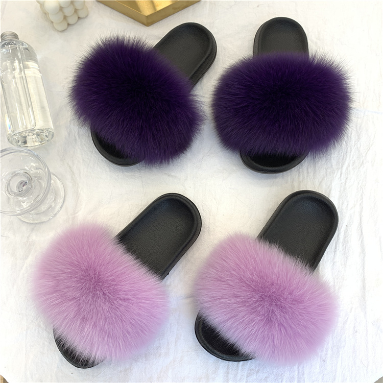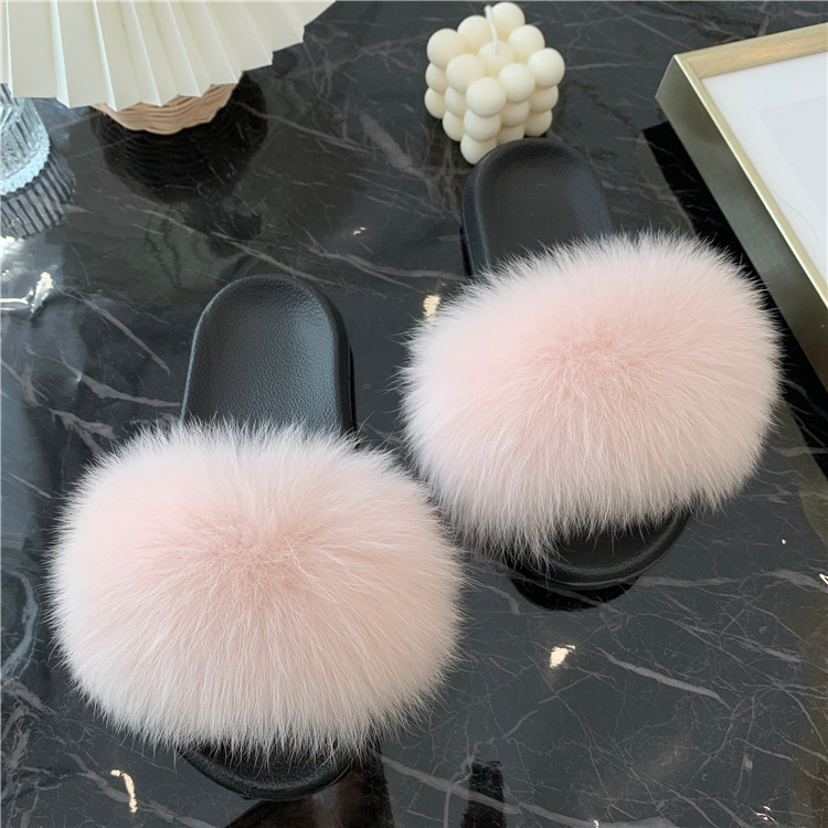 Zapatillas de pelo de zorro de moda damas una zapatilla de piel casera para usar zapatos de playa casuales zapatillas de piso plano