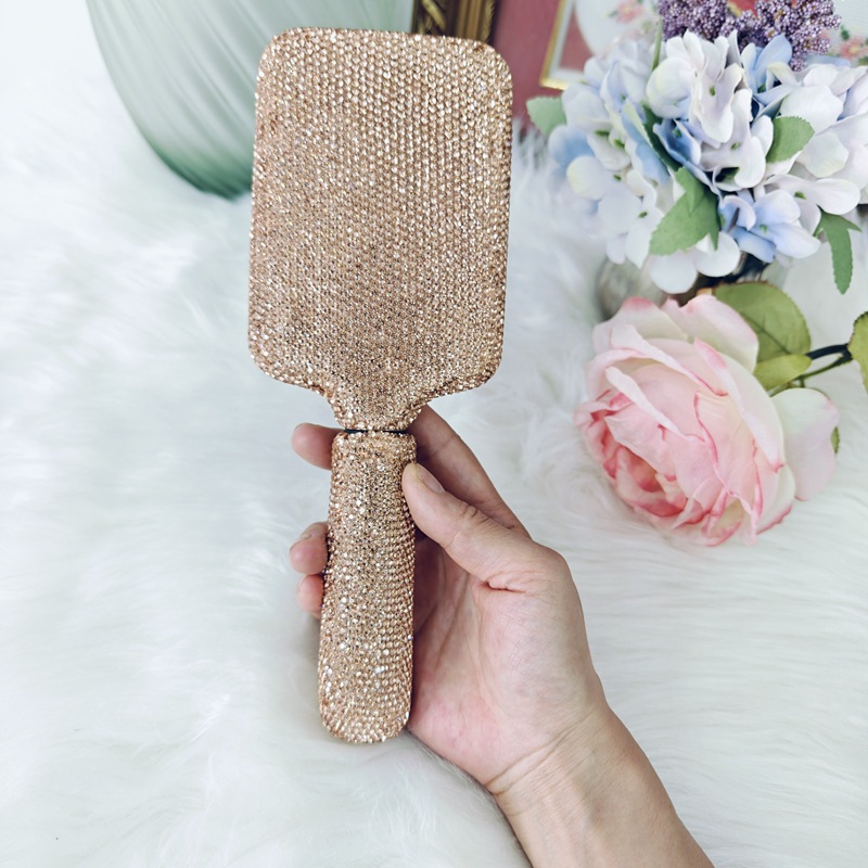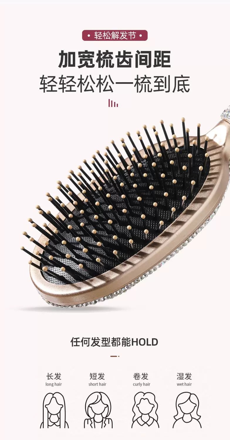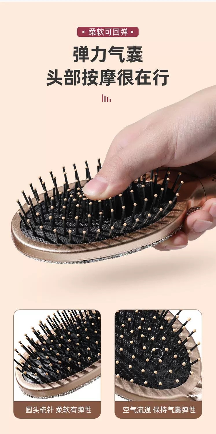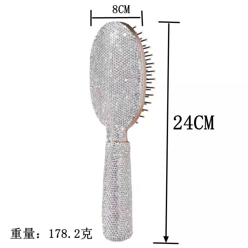 Alto aspecto champán diamante incrustado placa grande peine para las niñas, el hogar no duele el pelo masaje cojín de aire peine ins peluquería peine del pelo