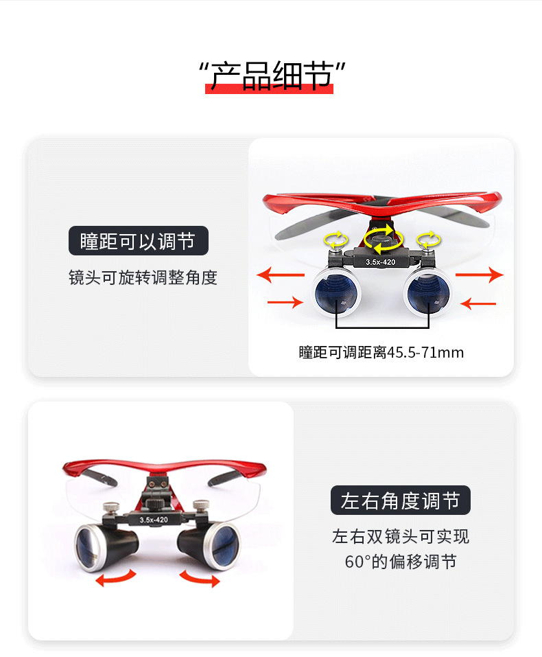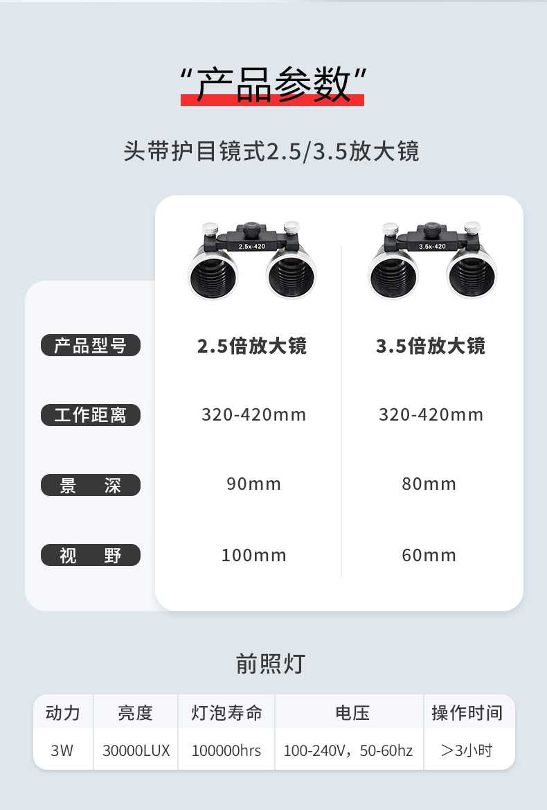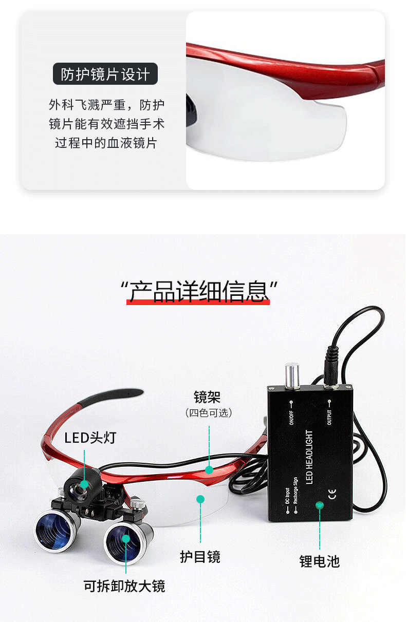 Lente de ampliación dental portátil Led Headlight médico Headlight binocular Headband quirúrgico Luz de iluminación