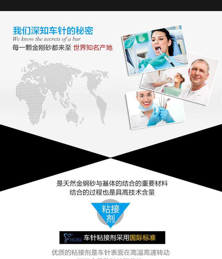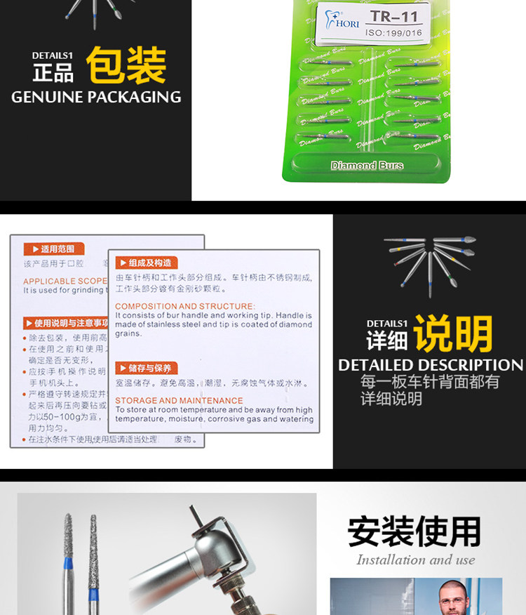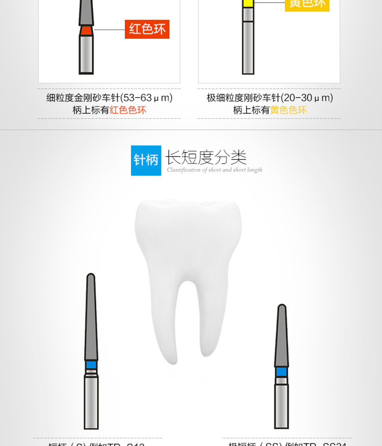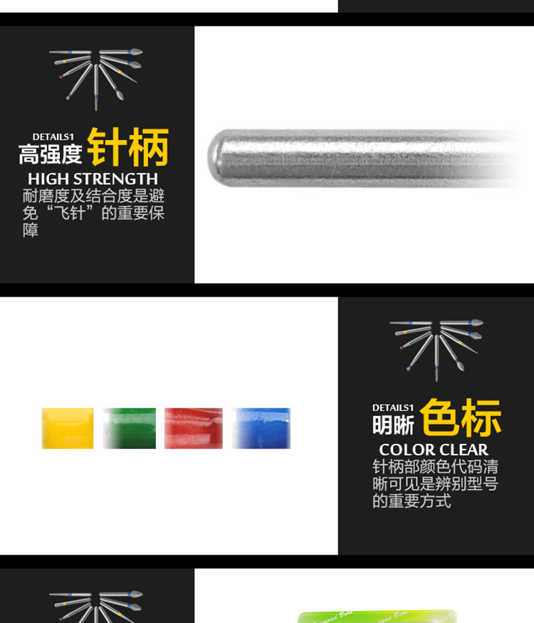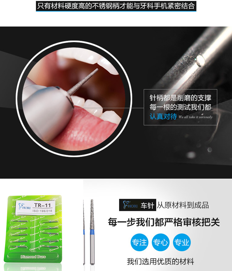 Fresas dentales de alta velocidad, fresas de diamante, fresas divididas, fresas esféricas, consumibles para preparación de porcelana, arena que no se desprende.