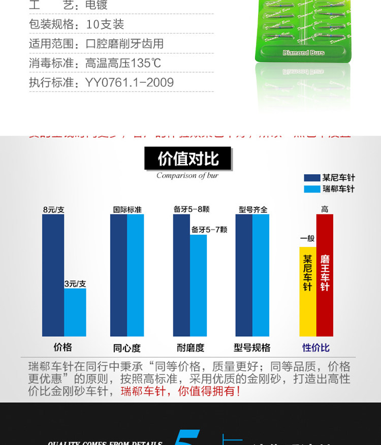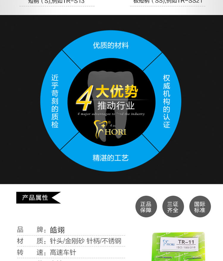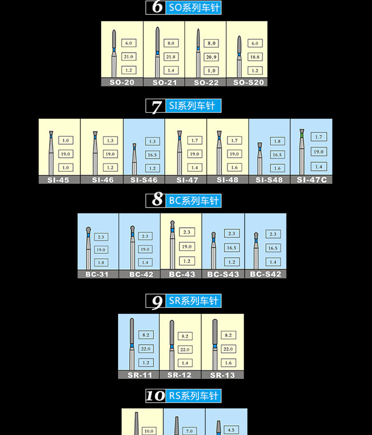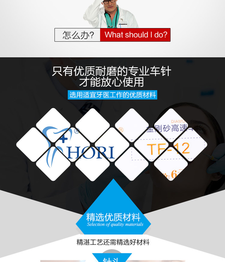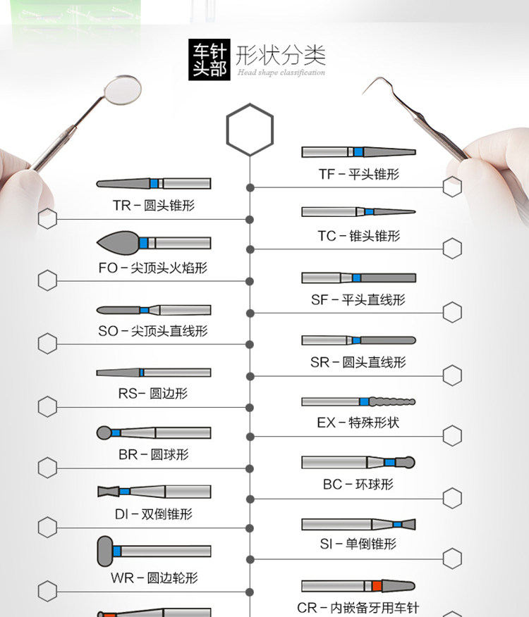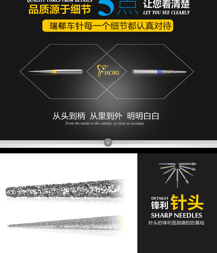 Fresas dentales de alta velocidad, fresas de diamante, fresas divididas, fresas esféricas, consumibles para preparación de porcelana, arena que no se desprende.