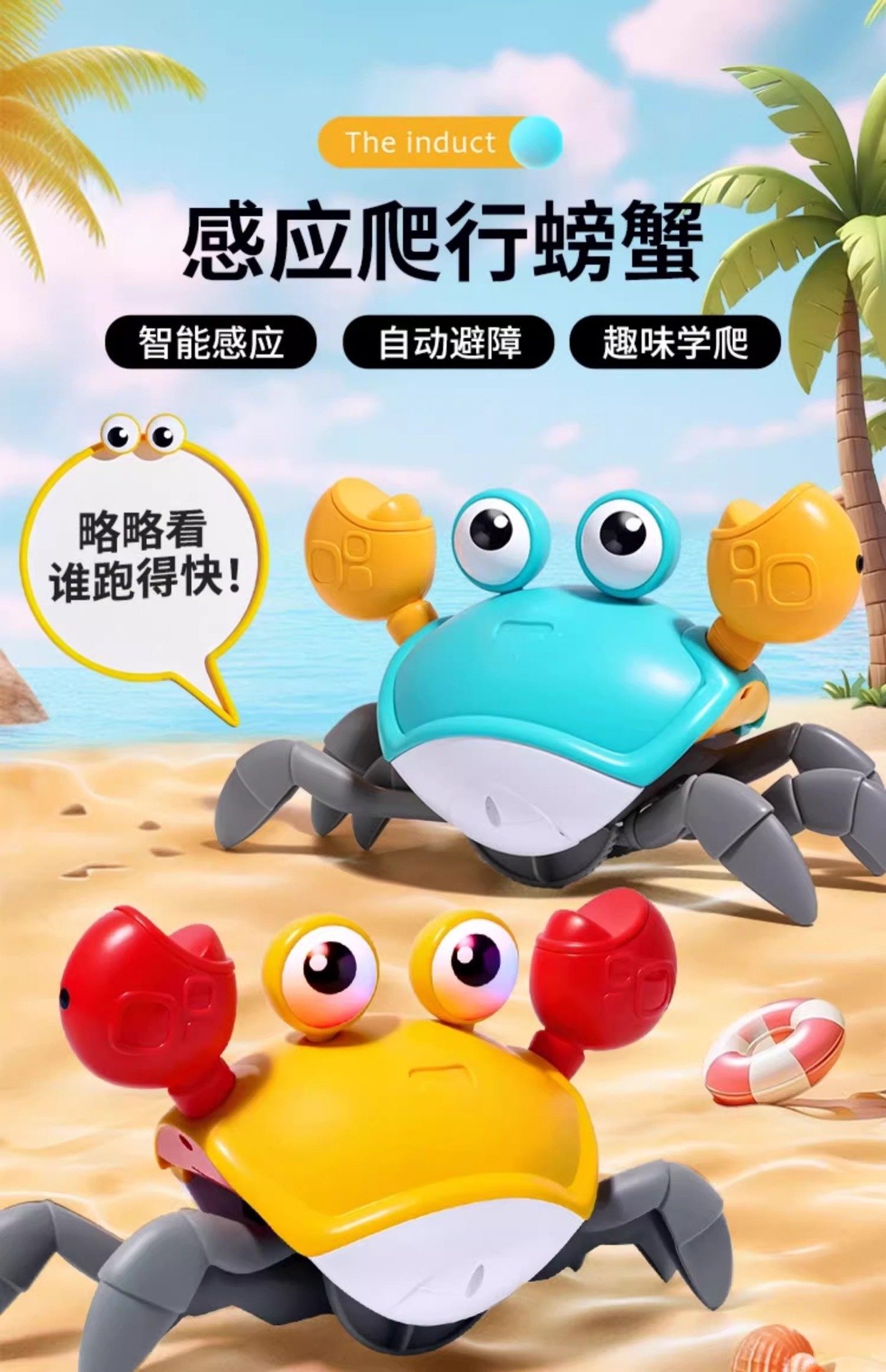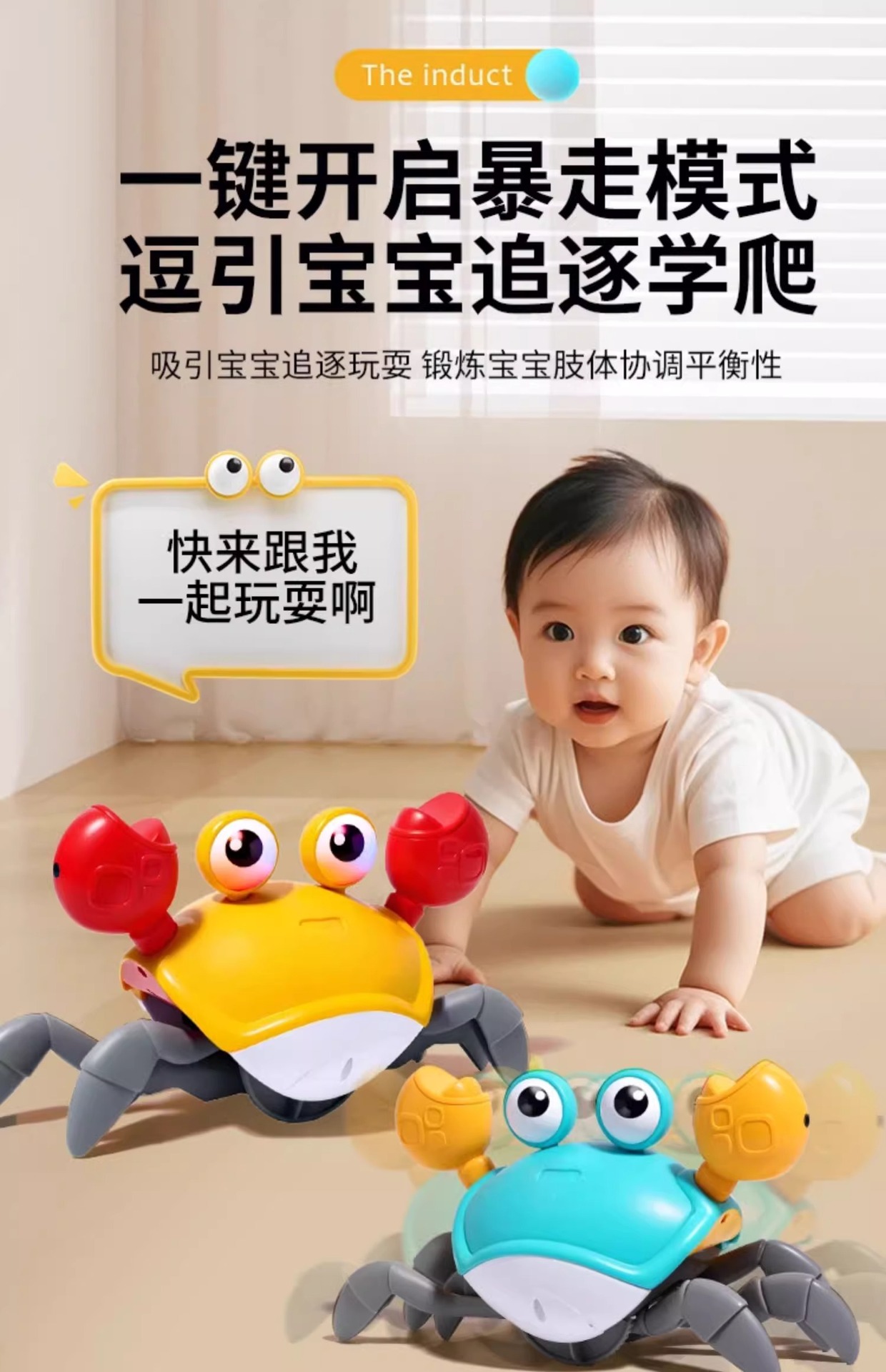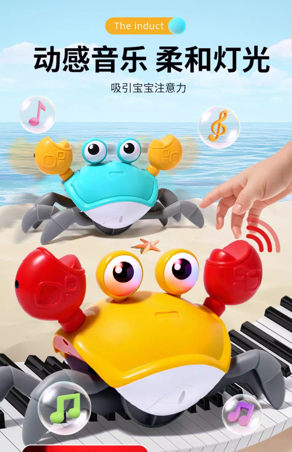 Cangrejo que se arrastrará y se moverá, inducción de escape, rompecabezas eléctricos, juguetes para bebés, niños, niños de 1 año, 2 niñas