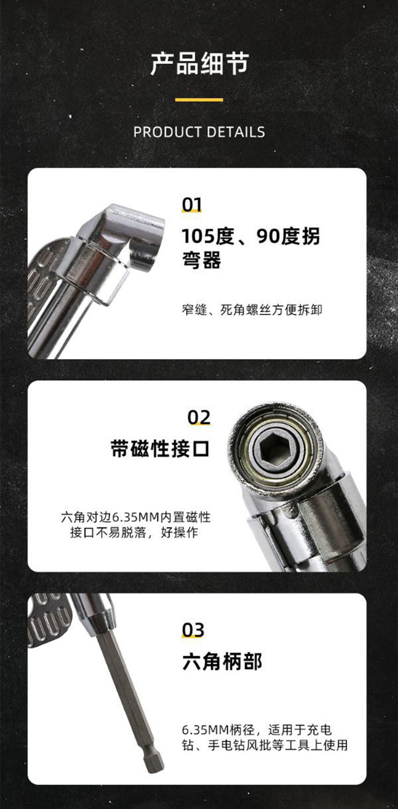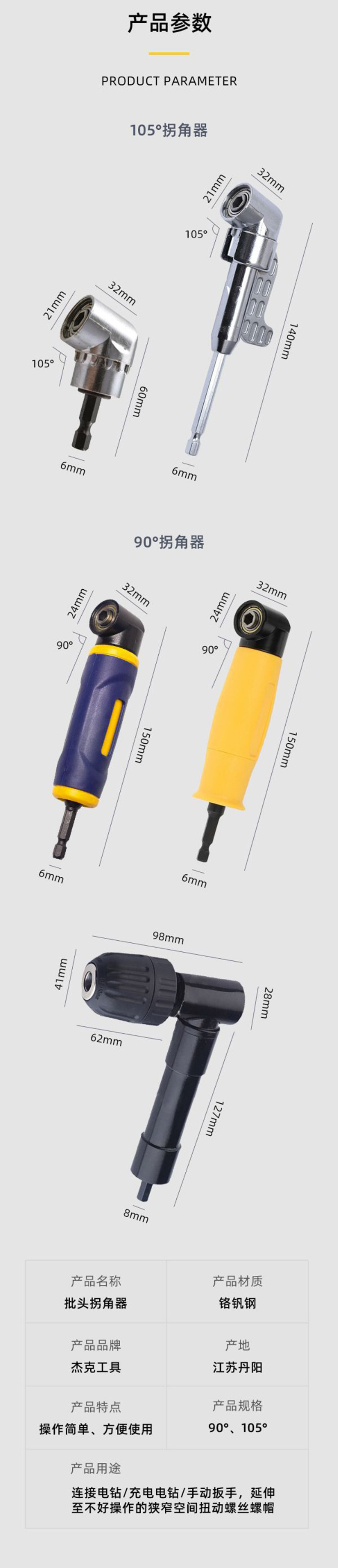 Esquina de cabezal de lote de 105 grados, tornillo de giro en ángulo recto, chal, venta directa de fábrica, mango hexagonal, taladro eléctrico, lote de giro